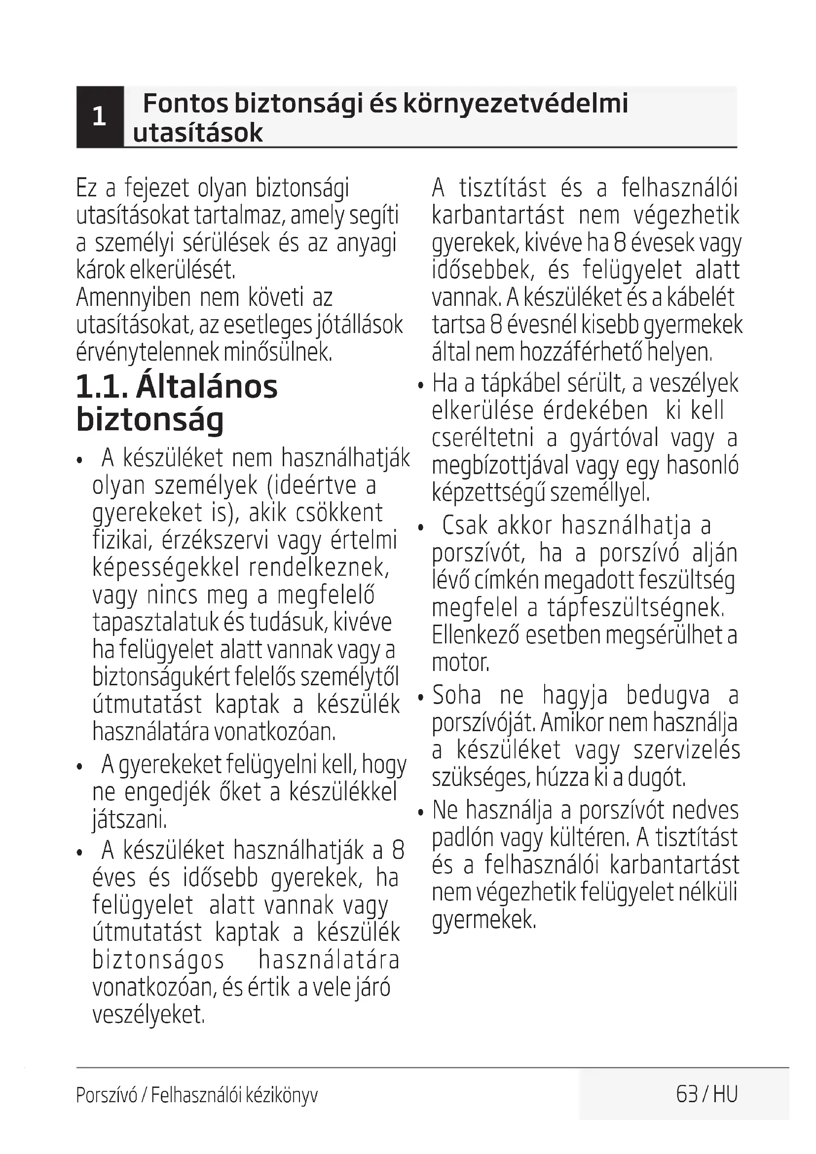 Fontosbiztonságiéskörnyezetvédelmi utasításokPorszívó / Felhasználói kézikönyv 65 / HU