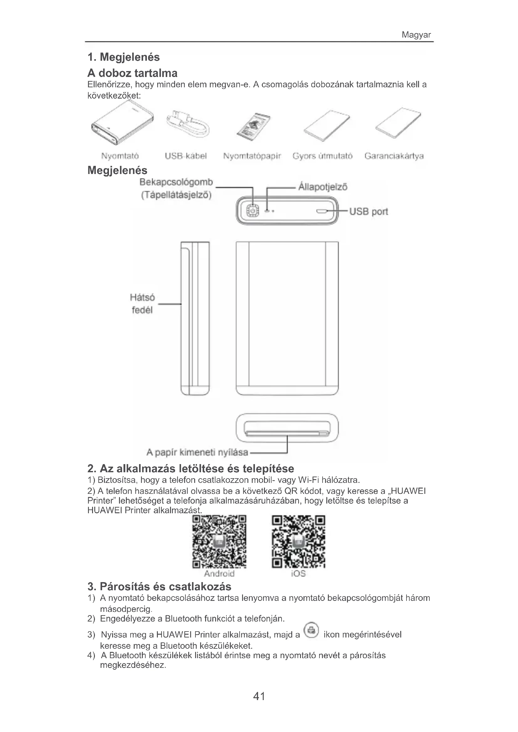 Töltse le az útmutatót a következőhöz Nyomtató PDF formátumban ingyenesen! Találja meg kézikönyvét Pocket Photo Printer - HUAWEI és vegye vissza elektronikus eszközét a kezébe. Ezen az oldalon közzé van téve az eszköze használatához szükséges összes dokumentum. Pocket Photo Printer márka HUAWEI.