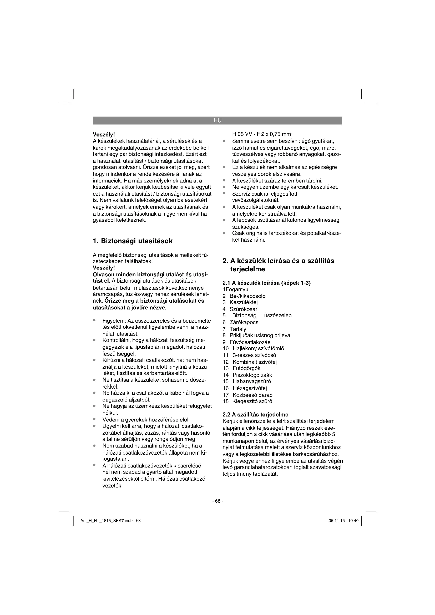 HNT 1815 - Porszívó Herkules - Ingyenes használati útmutató