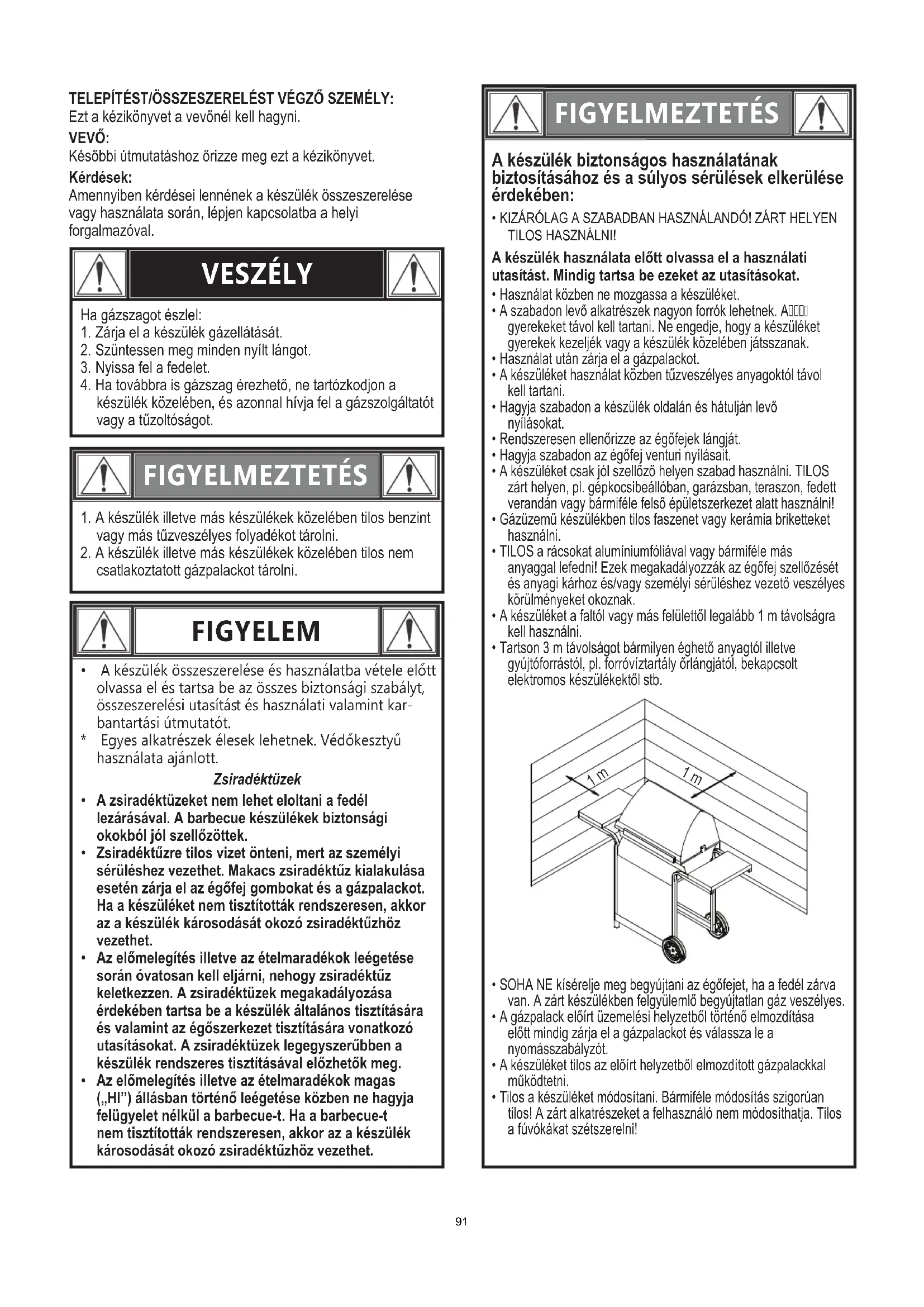 A zsiradéktüzeket nem lehet eloltani a fedél lezárásával. A barbecue készülékek biztonsági okokból jól szellőzöttek.
