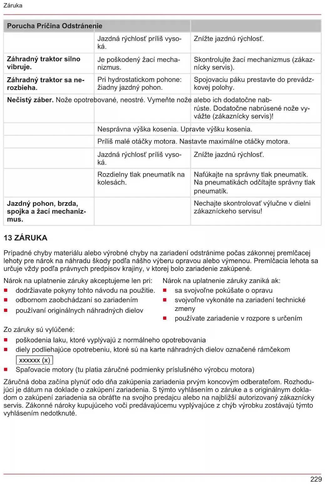 belső égésű motorokra (ezekre a motorgyártó cég garanciális rendelkezései érvényesek). A garancia az első végfelhasználó vásárlásától lép életbe. Az időpont meghatározásakor a fizetési bi- zonylaton szereplő dátum a mérvadó. A garanciajeggyel és az eredeti fizetési bizonylattal forduljon a szakkereskedéshez vagy a legközelebbi hivatalos ügyfélszolgálathoz. A vevő eladóval szembeni kel- lékszavatossági jogainak törvényes érvényesítési lehetőségeit a jelen nyilatkozat nem befolyásolja.249 Oversættelse af den originale brugsanvisning