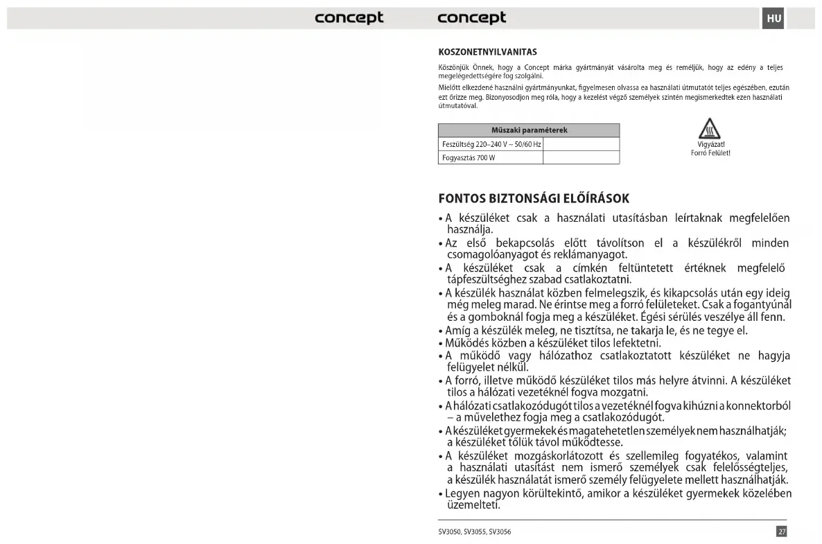 HASZNÁLATI ÚTMUTATÓ SV3056 Concept
