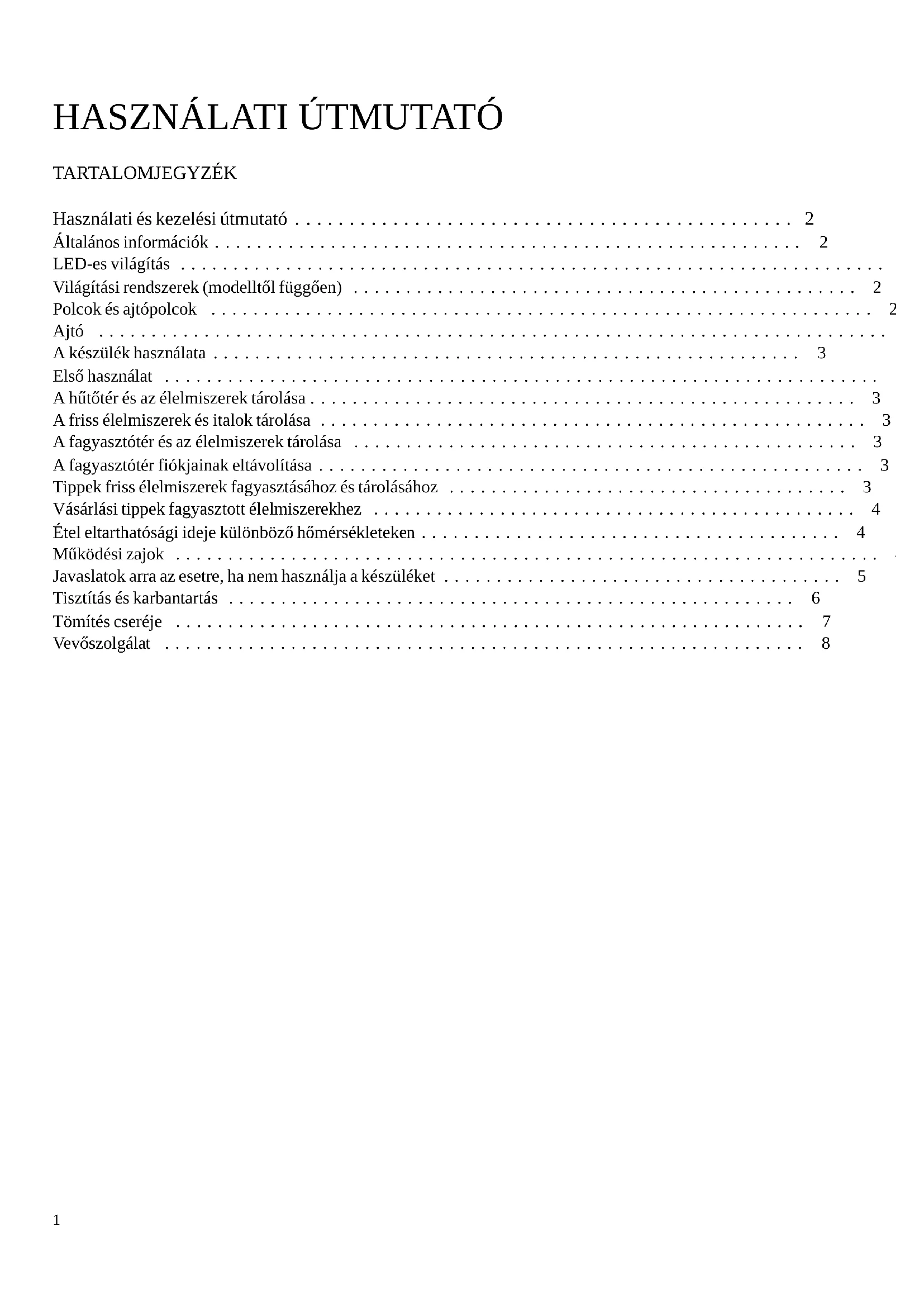 - TARTALOMJEGYZÉK Használati és kezelési útmutató p. 2