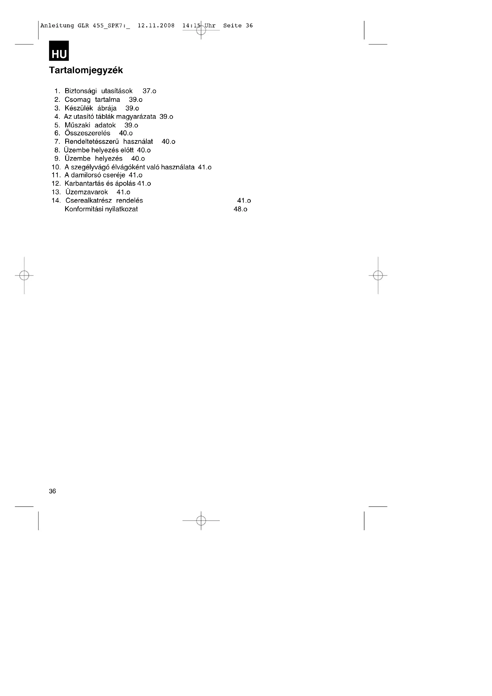 - ‰ÈÏÒÛÙ ÙȘ ÛÂÏ›‰· 2-5 @ Kérjük a 2-től – 5-ig levő oldalakat szétnyitni X Prosimo razgrnite strani 2-5 Anleitung GLR 455_SPK7:_ 12.11.2008 14:15 Uhr Seite 23