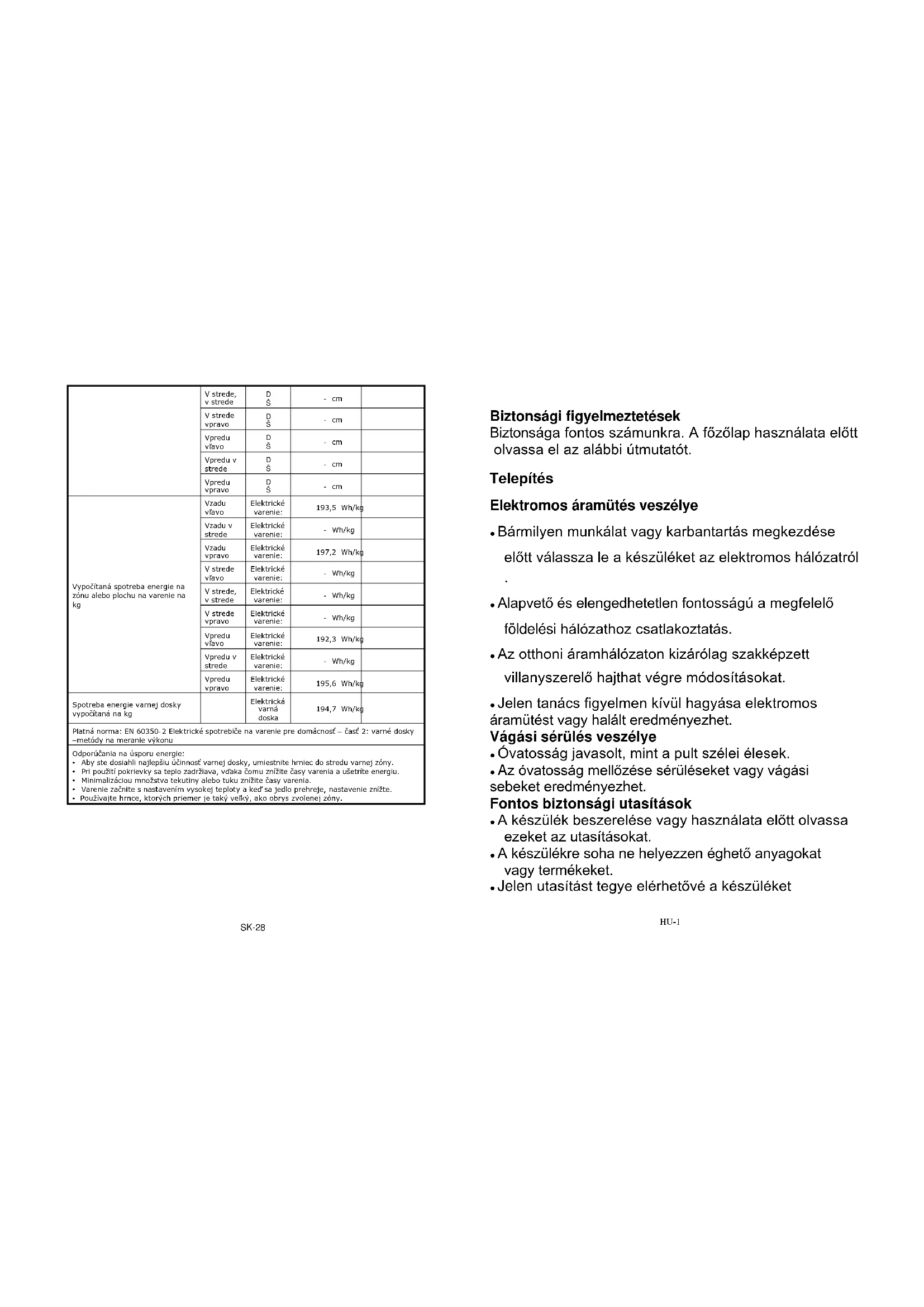 ● Jelen tanács figyelmen kívül hagyása elektromos áramütést vagy halált eredményezhet. Vágási sérülés veszélye ● Óvatosság javasolt, mint a pult szélei élesek. ● Az óvatosság mellőzése sérüléseket vagy vágási sebeket eredményezhet. Fontos biztonsági utasítások ● A készülék beszerelése vagy használata előtt olvassa ezeket az utasításokat. ● A készülékre soha ne helyezzen éghető anyagokat vagy termékeket. ● Jelen utasítást tegye elérhetővé a készüléket Biztonsági figyelmeztetések Biztonsága fontos számunkra. A főzőlap használata előtt olvassa el az alábbi útmutatót. Telepítés Elektromos áramütés veszélye ● Bármilyen munkálat vagy karbantartás megkezdése előtt válassza le a készüléket az elektromos hálózatról