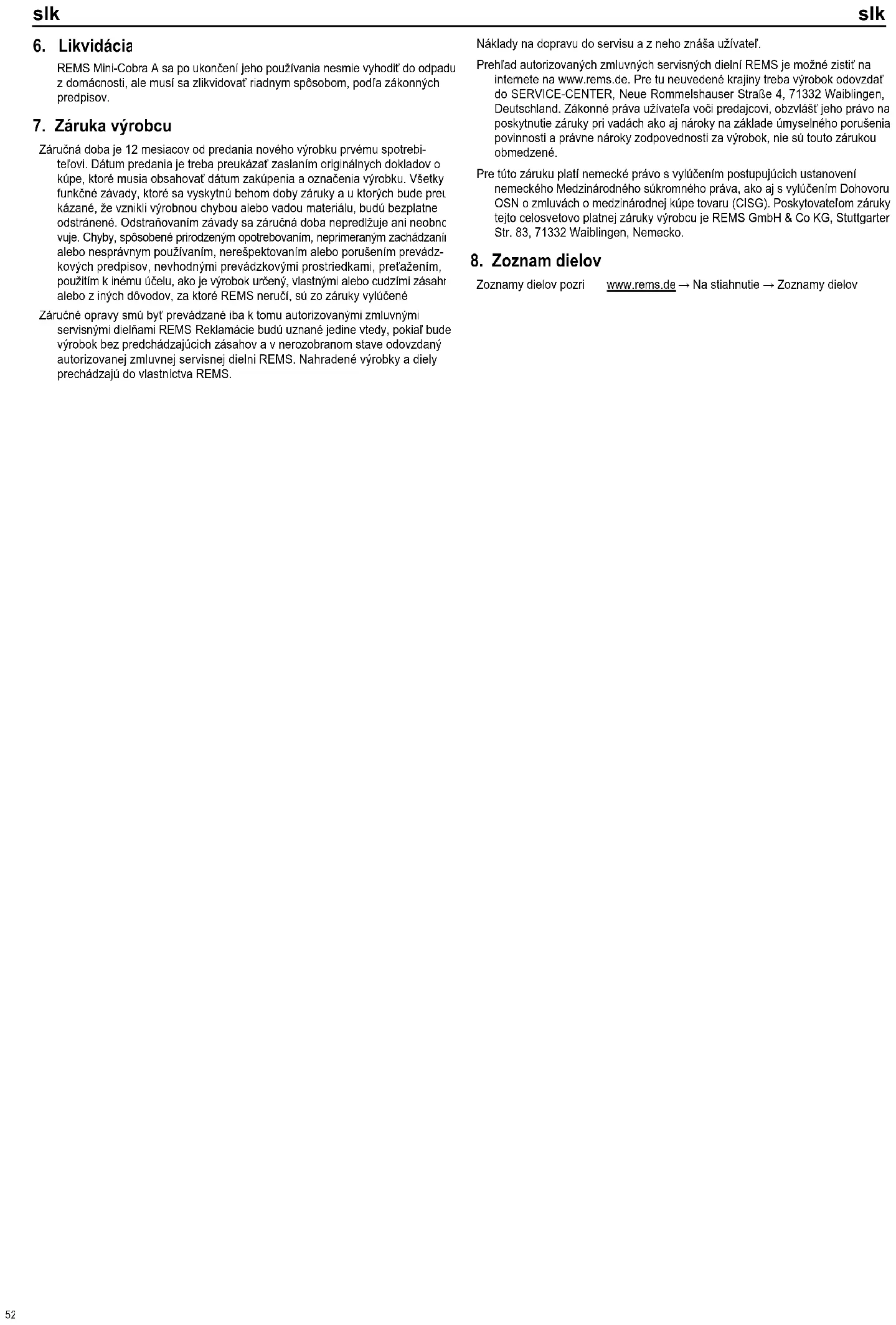 A REMS Mini-Cobra A szerszámot tilos használati ideje lejártával a háztartási hulladék közé helyezni, hanem a törvényi előírásoknak megfelelően kell ártal- matlanítani.