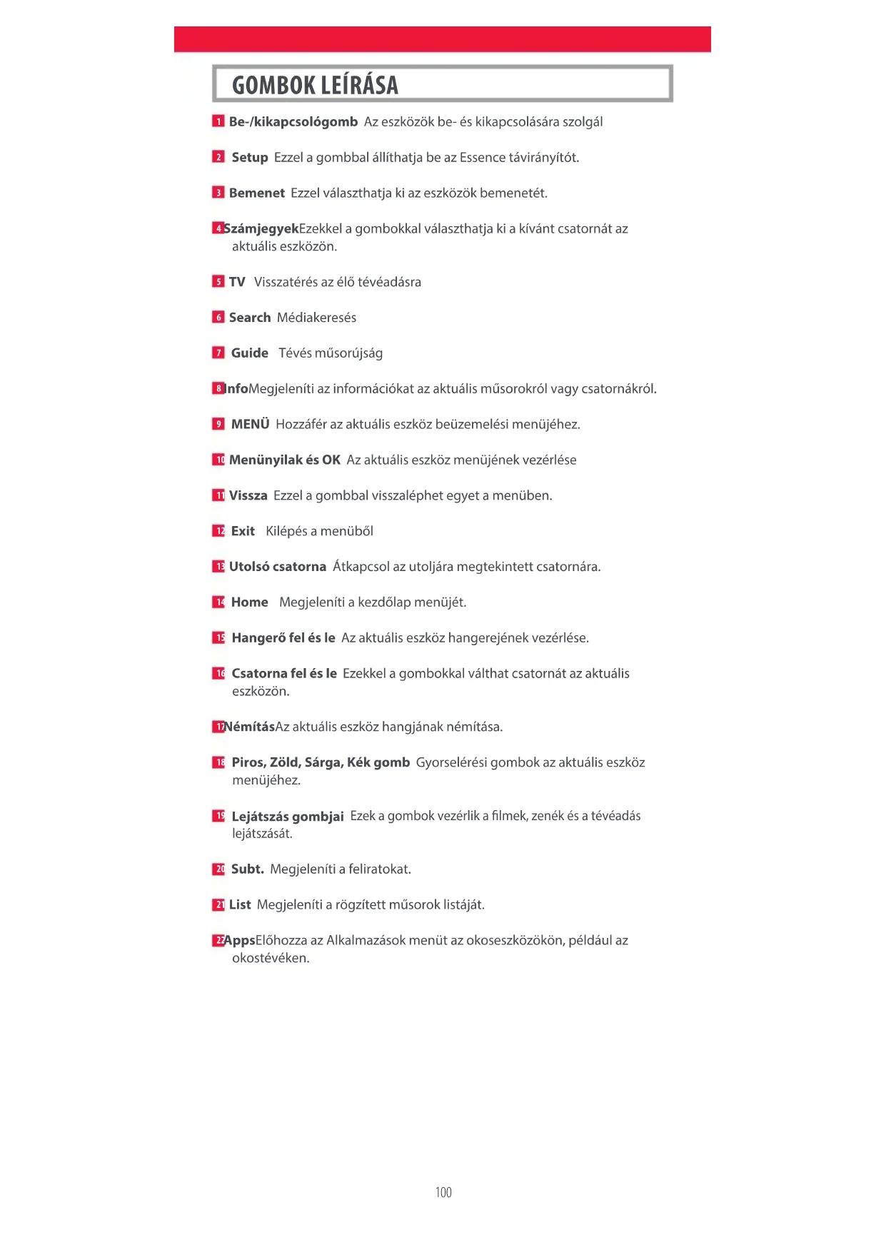 Setup Ezzel a gombbal állíthatja be az Essence távirányítót.