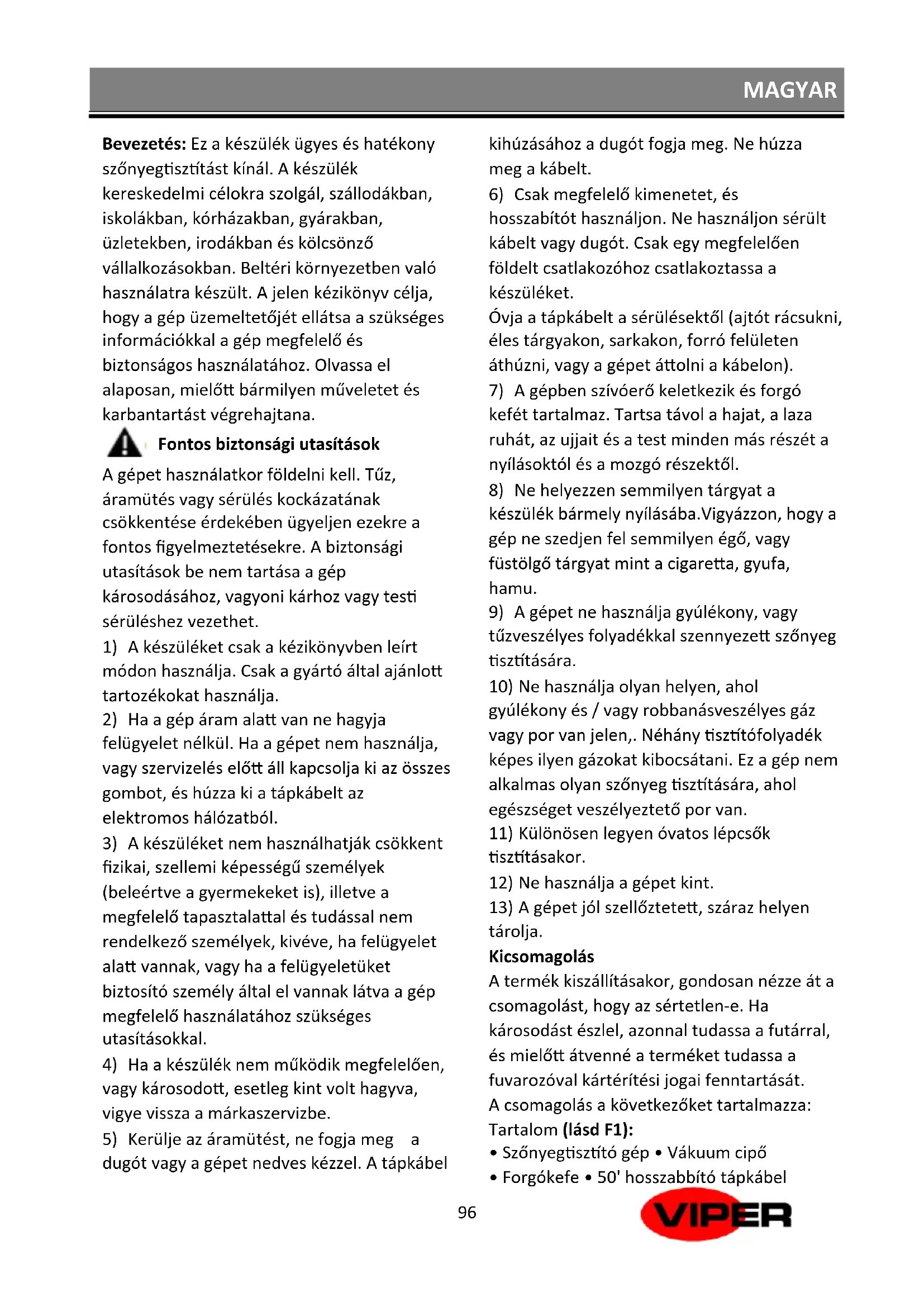 CEX410 - Porszívó Viper - Ingyenes használati útmutató