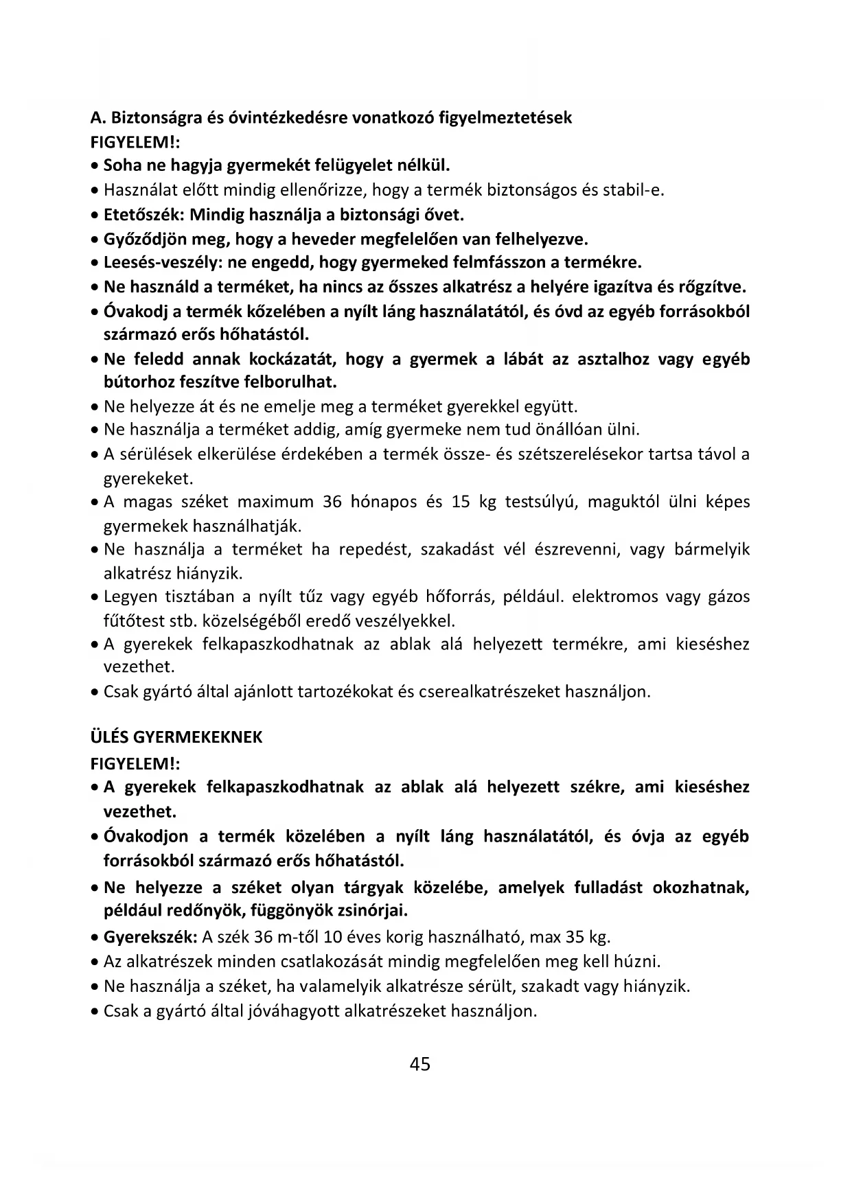 - Etetőszék:يMindigيhasználjaيaيbiztonságiيővet.