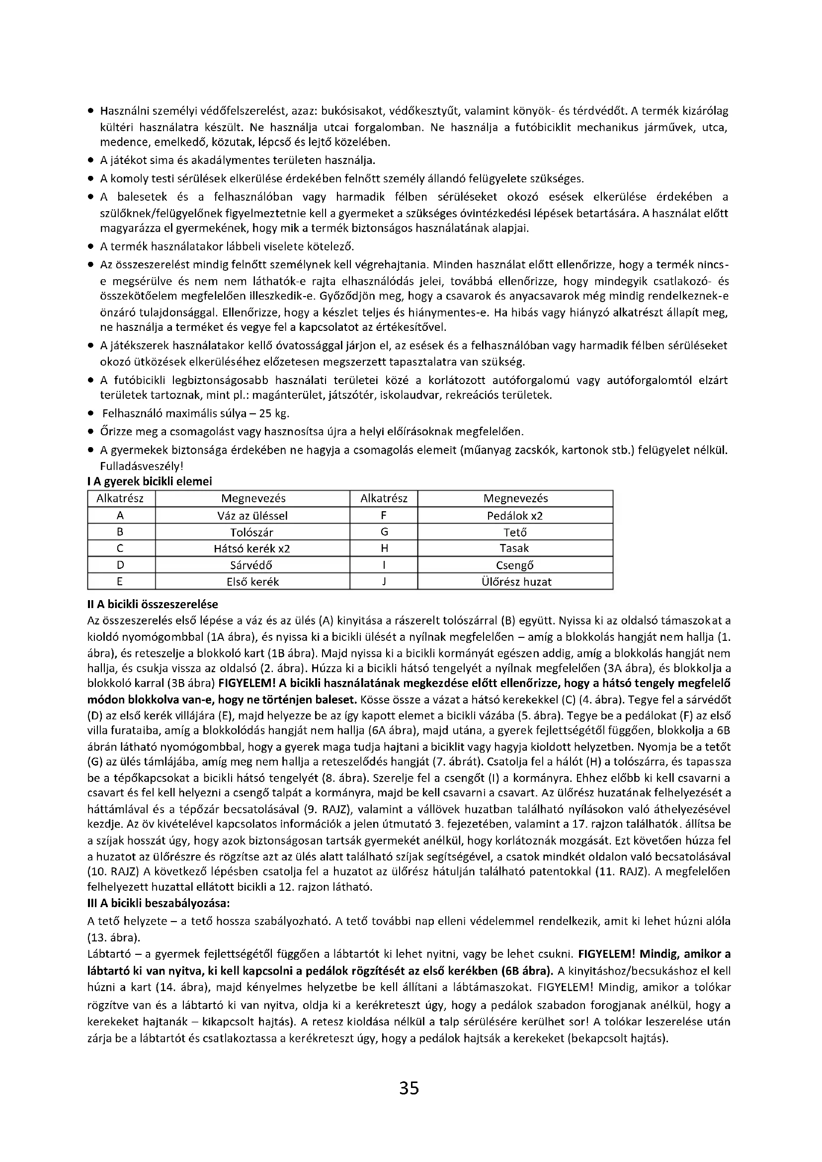 - Az útmutató betartása lehetővé teszi a játékszer biztonságos használatát. Kérjük, a bicikli használata előtt olvassa el figyelmesen a jelen használati útmutatót és őrizze azt meg! 9 hónapos kort betöltött gyermekeknek ajánlott.35