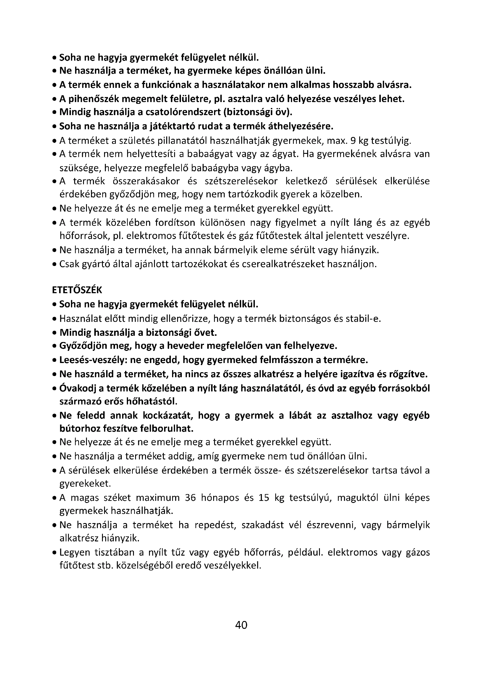 - Leesés-veszély: ne engedd, hogy gyermeked felmfásszon a termékre.