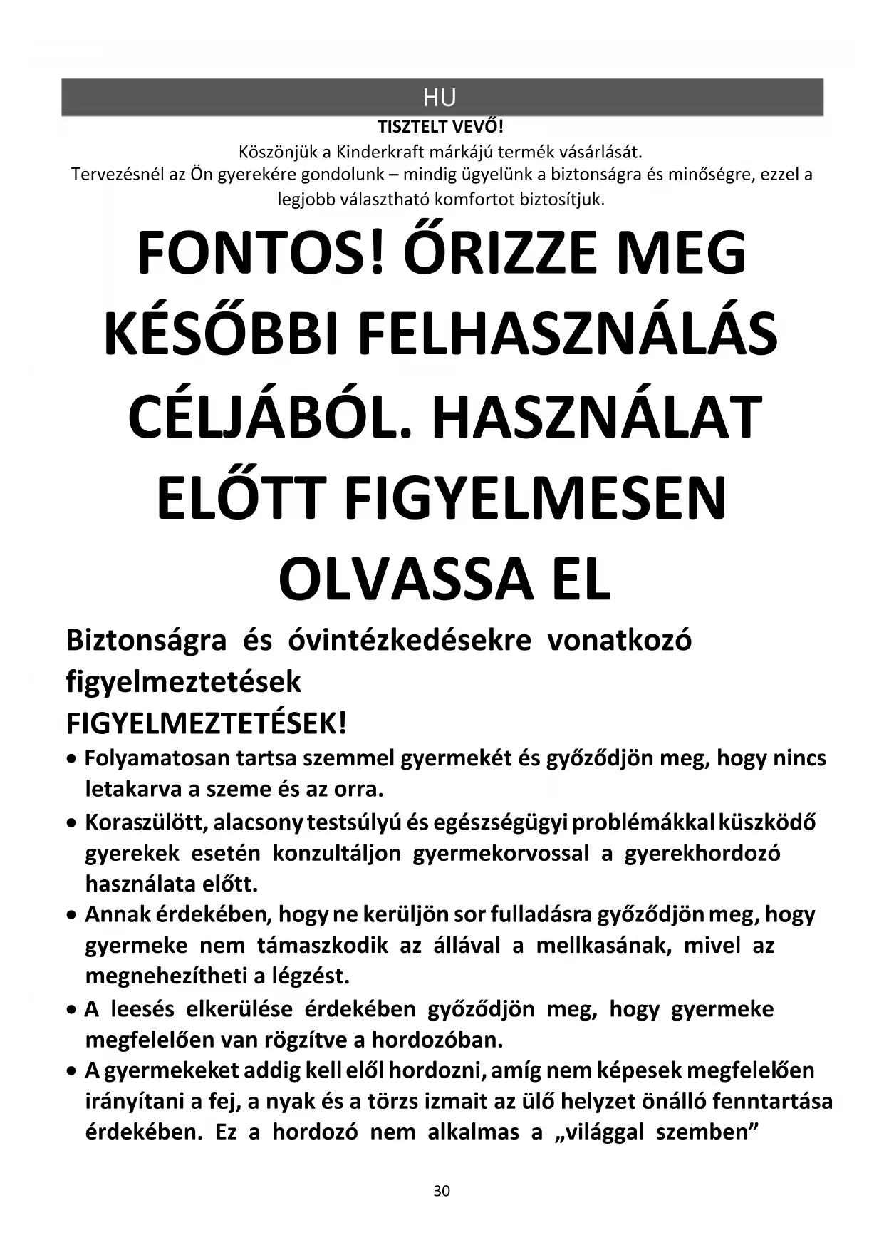 TISZTELT VEVŐ! Köszönjük a Kinderkraft márkájú termék vásárlását. Tervezésnél az Ön gyerekére gondolunk – mindig ügyelünk a biztonságra és minőségre, ezzel a legjobb választható komfortot biztosítjuk.