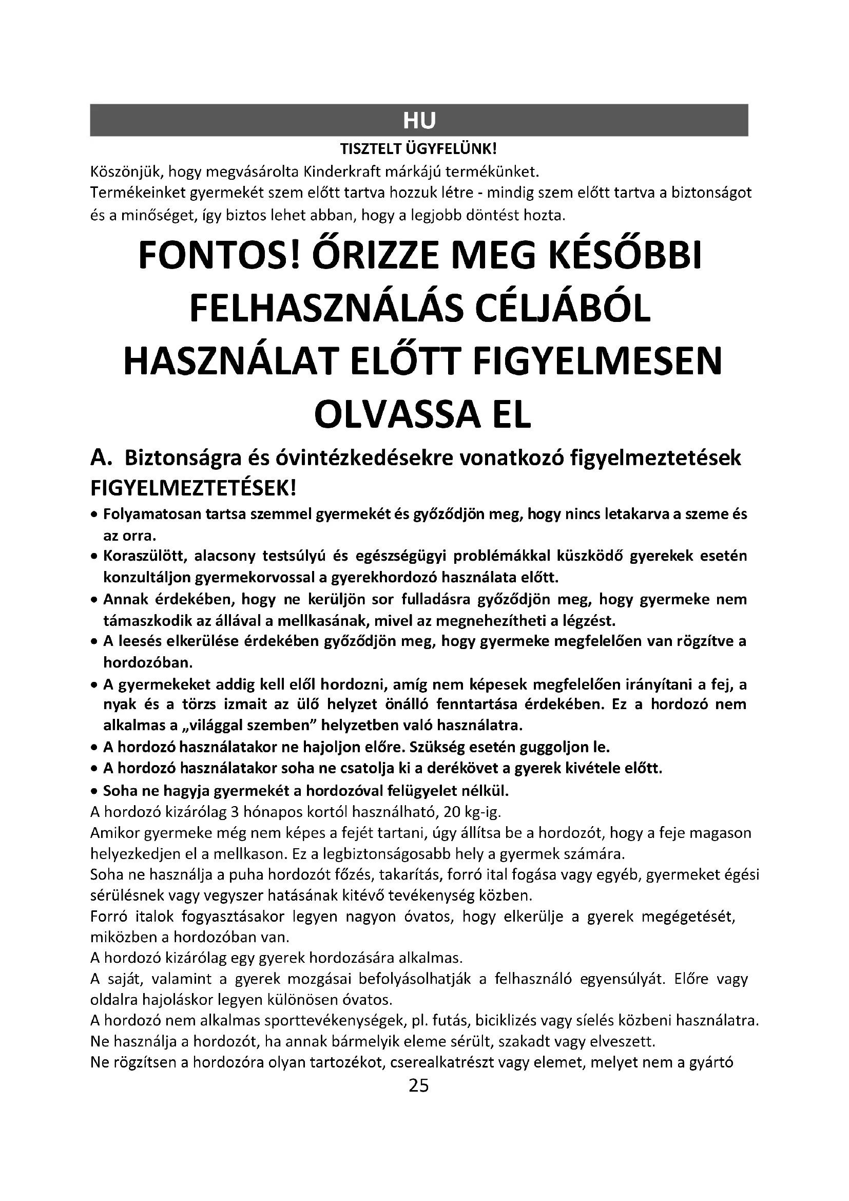 TISZTELT ÜGYFELÜNK! Köszönjük, hogy megvásárolta Kinderkraft márkájú termékünket. Termékeinket gyermekét szem előtt tartva hozzuk létre - mindig szem előtt tartva a biztonságot és a minőséget, így biztos lehet abban, hogy a legjobb döntést hozta.