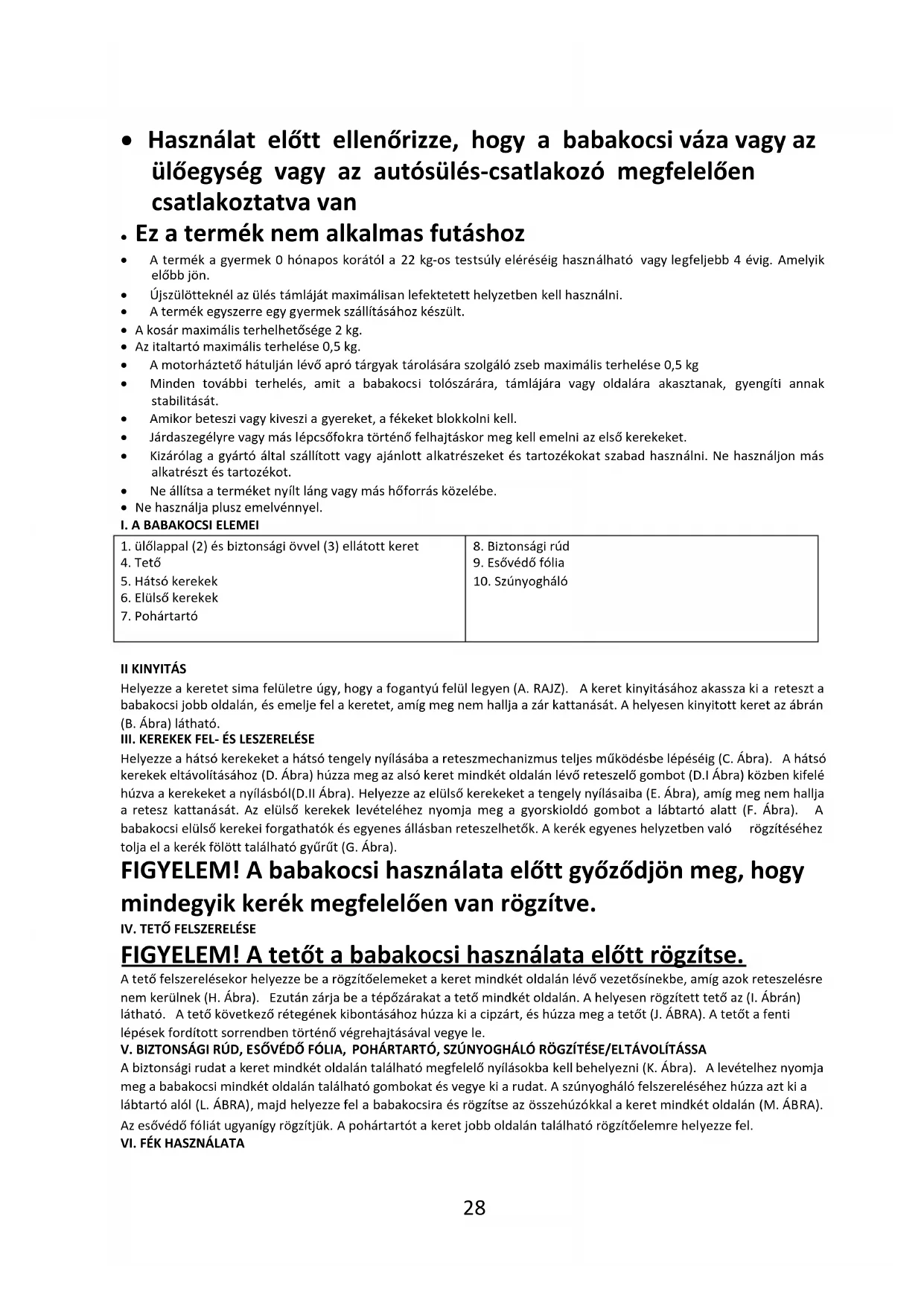 - A sérülések elkerülése végett, tartsa távol gyermekét a babakocsi összecsukásakor és széthajtásakor