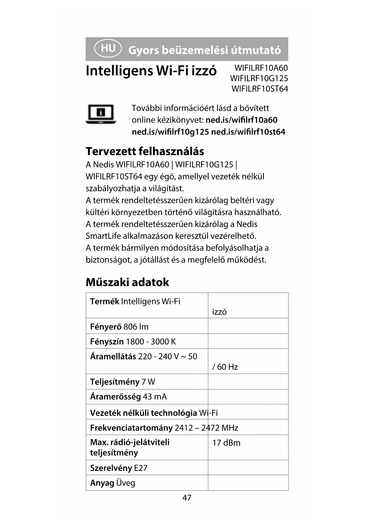 HASZNÁLATI ÚTMUTATÓ WIFILRF10A60 NEDIS