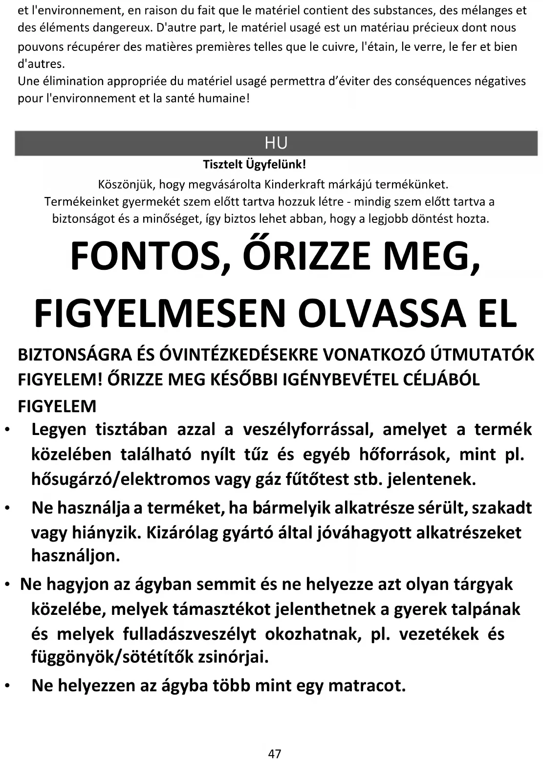 Tisztelt Ügyfelünk! Köszönjük, hogy megvásárolta Kinderkraft márkájú termékünket. Termékeinket gyermekét szem előtt tartva hozzuk létre - mindig szem előtt tartva a biztonságot és a minőséget, így biztos lehet abban, hogy a legjobb döntést hozta. FONTOS, ŐRIZZE MEG,