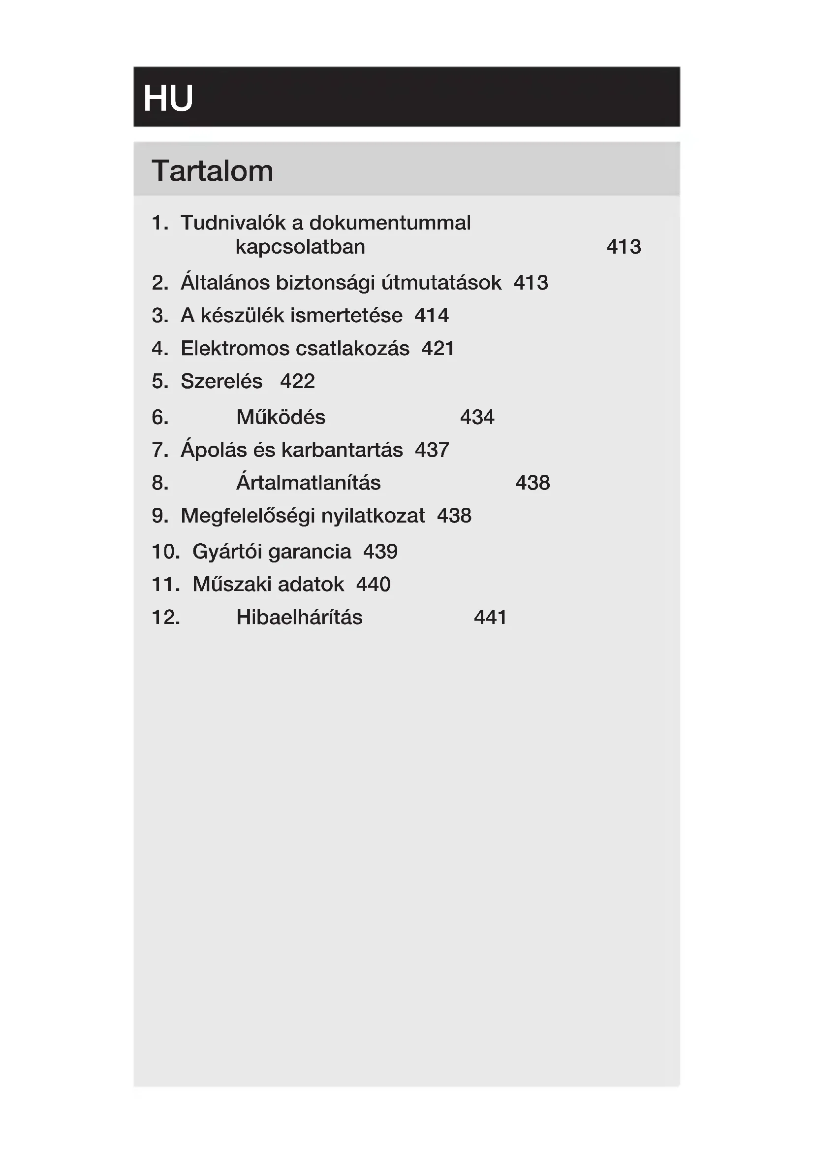 10. Gyártói garancia 439