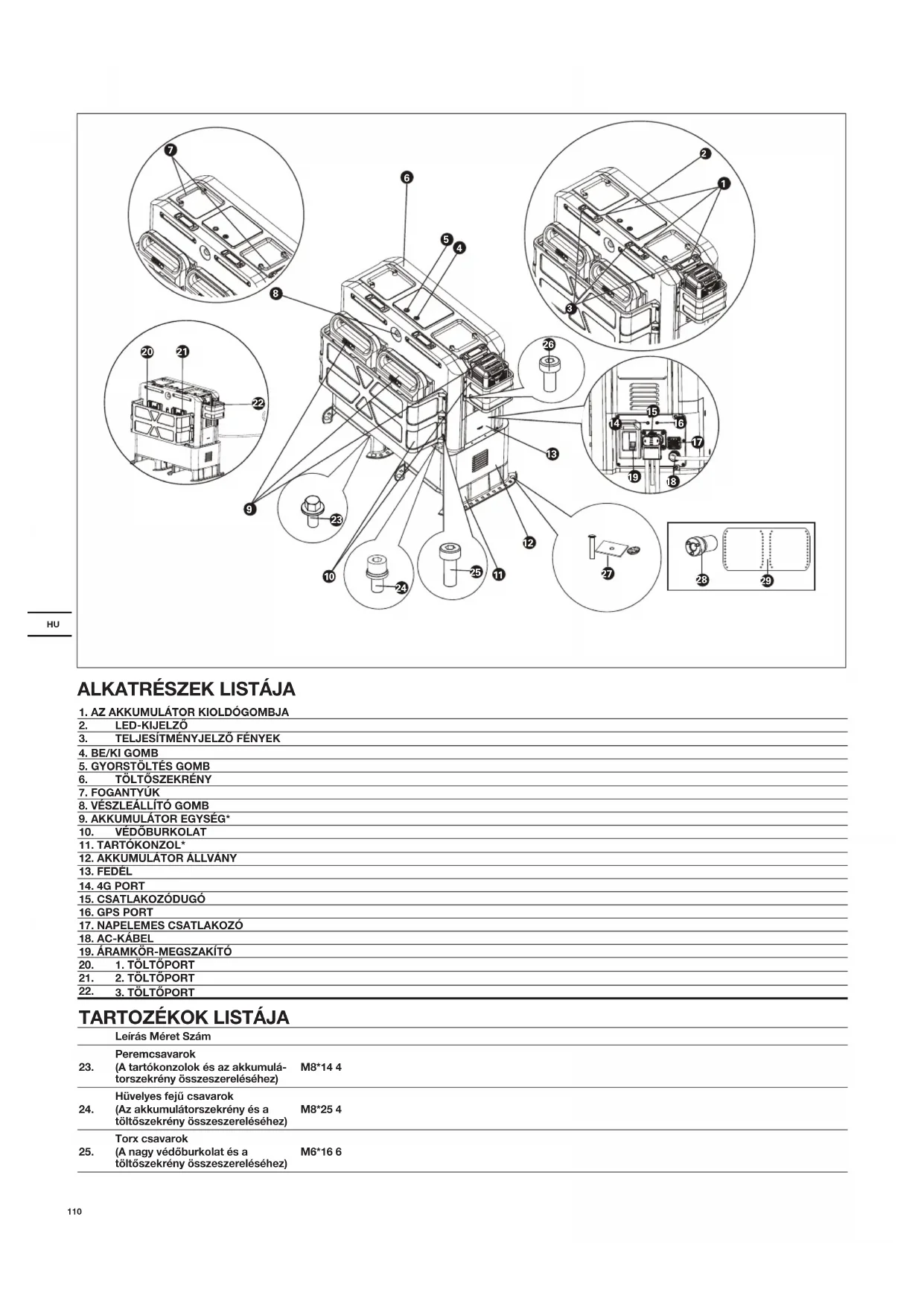 Hüvelyes fejĦ csavarok (Az akkumulátorszekrény és a töltĘszekrény összeszereléséhez) M8*25 4