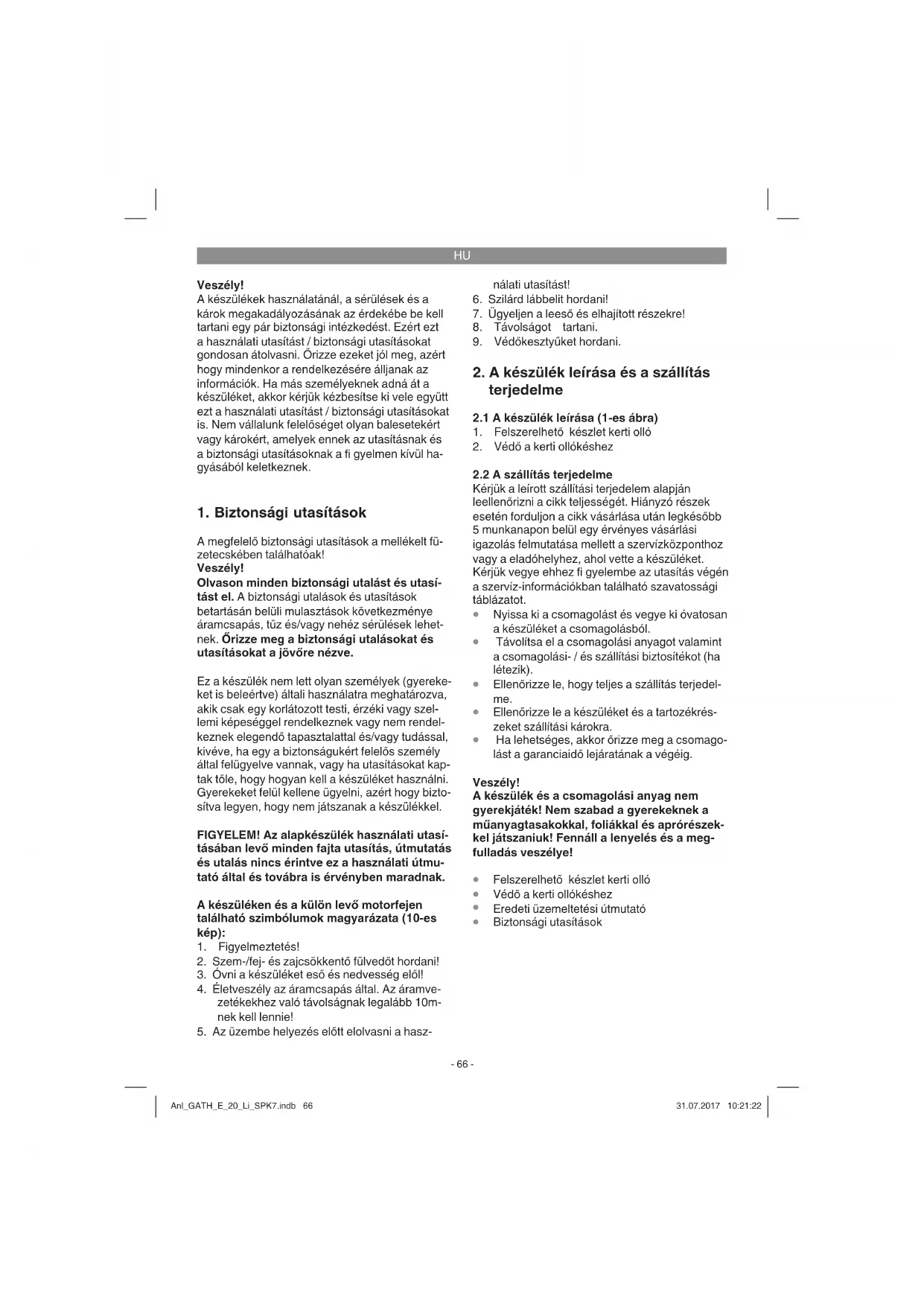 alatt: www.isc-gmbh.info. Kérjük tartsa készenlétben az új készülék ön általi vásárlásának a bizo- nylatát vagy más igazolásait. Olyan készülékeket, amelyek megfelelő igazolás vagy típustábla nélkül kerülnek beküldésre, azok hiányzó hozzárendelési lehetőség miatt ki vannak zárva a garnciateljesít- mény alol. Ha a készülék defektjére kiterjed a garnciateljesítményünk, akkor azonnal visszakap egy megjavított vagy egy új készüléket. Ennek a használati utasításnak a szervíz-információja szerint utalunk ennek a garanciának a gyorsan kopó részekkel, használati részekkel és hiányzó részekkel kapcsolatban fennálló fenntartásáira. Anl_GATH_E_20_Li_SPK7.indb 72Anl_GATH_E_20_Li_SPK7.indb 72 31.07.2017 10:21:2331.07.2017 10:21:23SI