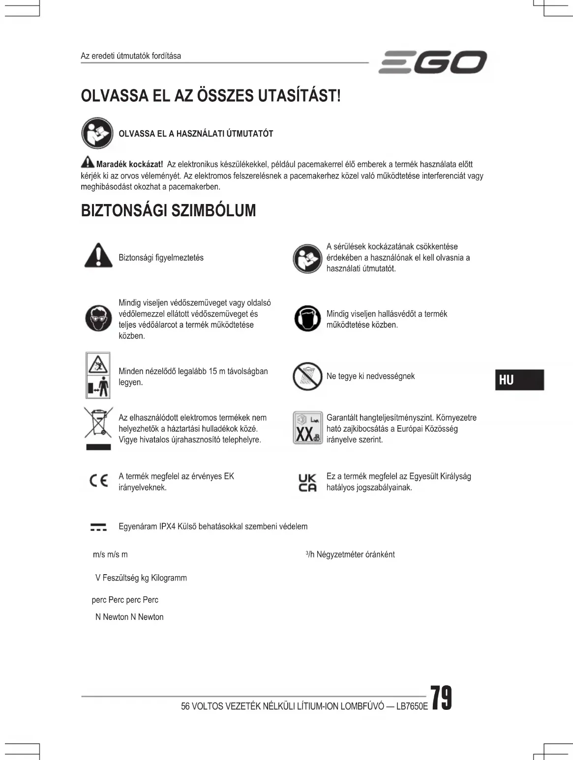 LB7650E - Fúvó EGO - Ingyenes használati útmutató