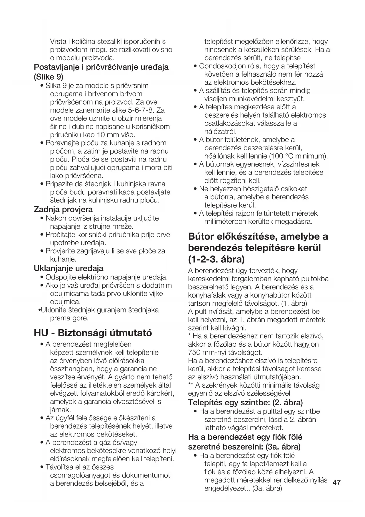 - Ha a berendezést egy fiók fölé telepíti, egy fa lapot/lemezt kell a fiók és a főzőlap közé elhelyezni. A megadott méretekkel rendelkező nyílás engedélyezett. (3a. ábra)48