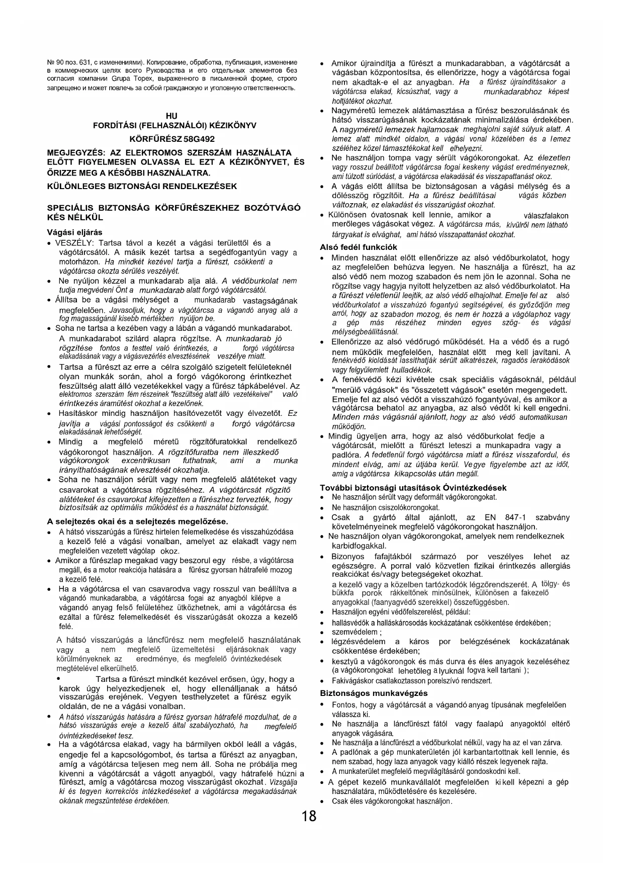A munka megkezdésekor a fűrészt mindig mindkét kézzel, mindkét fogantyú segítségével tartsa biztonságosan.