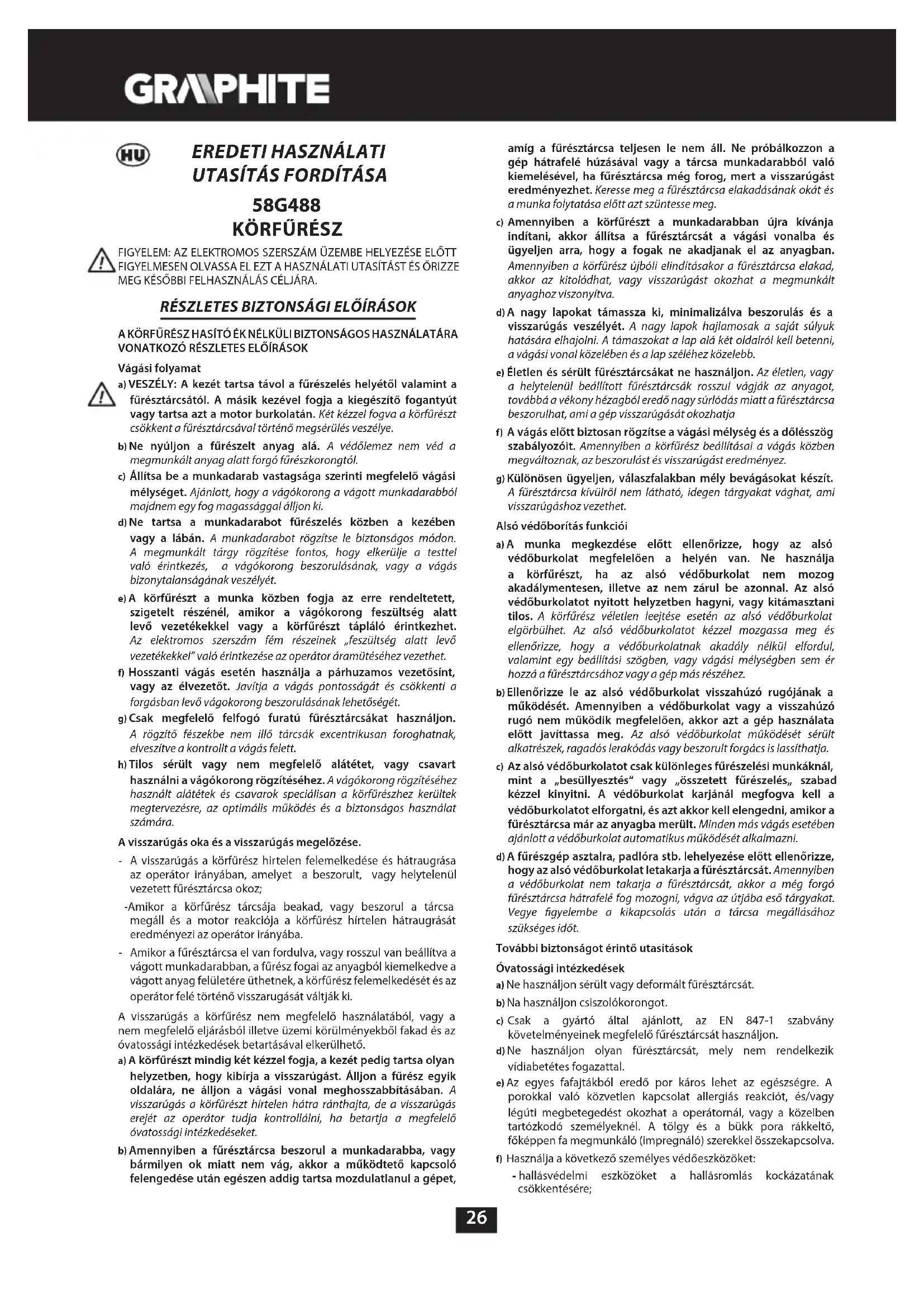 58G488 - Fűrész Graphite - Ingyenes használati útmutató