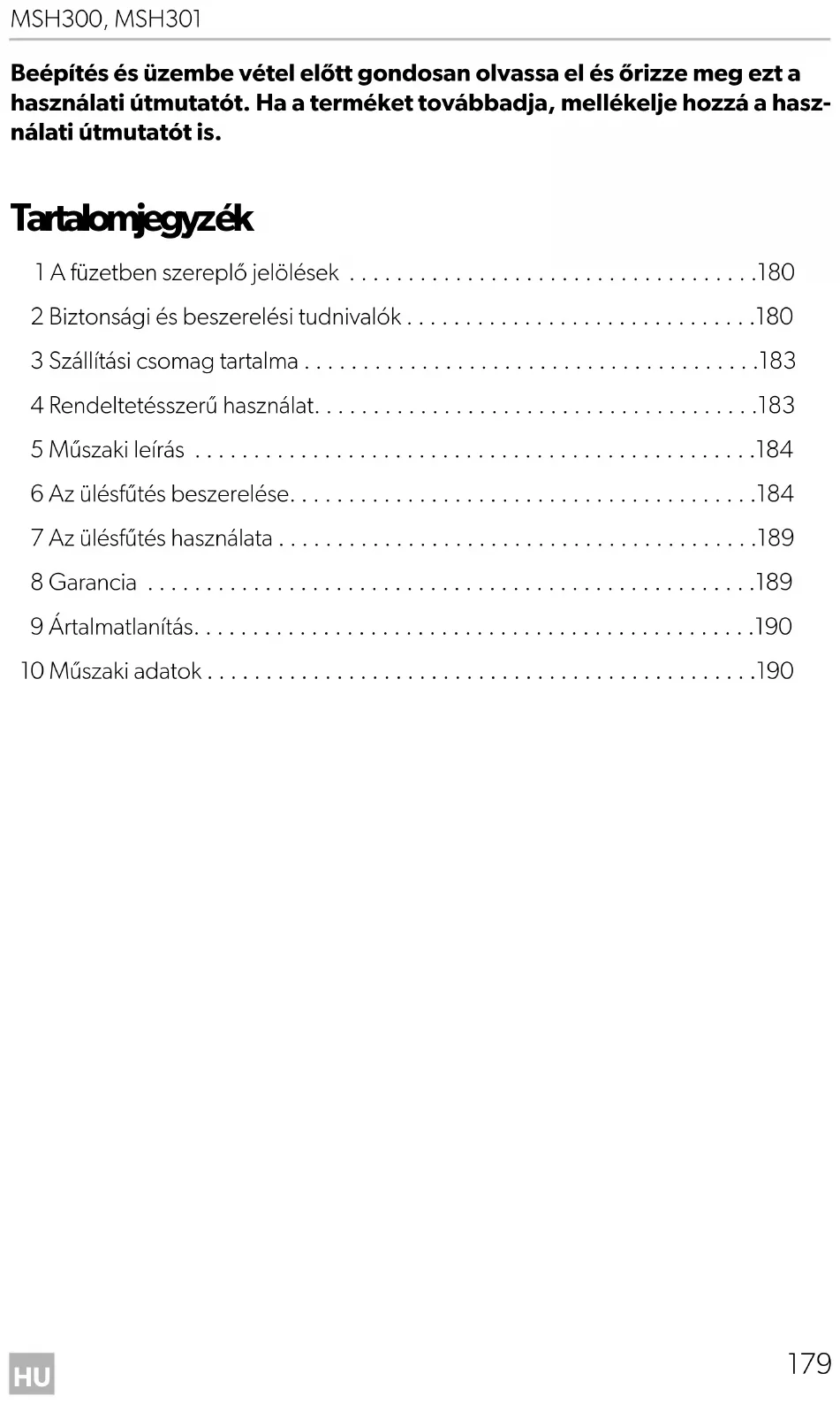 - a reklamáció okát vagy a hibát tartalmazó leírást. MEGJEGYZÉS Az ülésfűtéslogó (l. ábra 1, 8. oldal) akkor is világít, ha az ülésfűtés ki van kapcsolva. MSH300--IO-16s.book Seite 189 Donnerstag, 13. Juli 2017 10:28 10HU Ártalmatlanítás MSH300, MSH301
