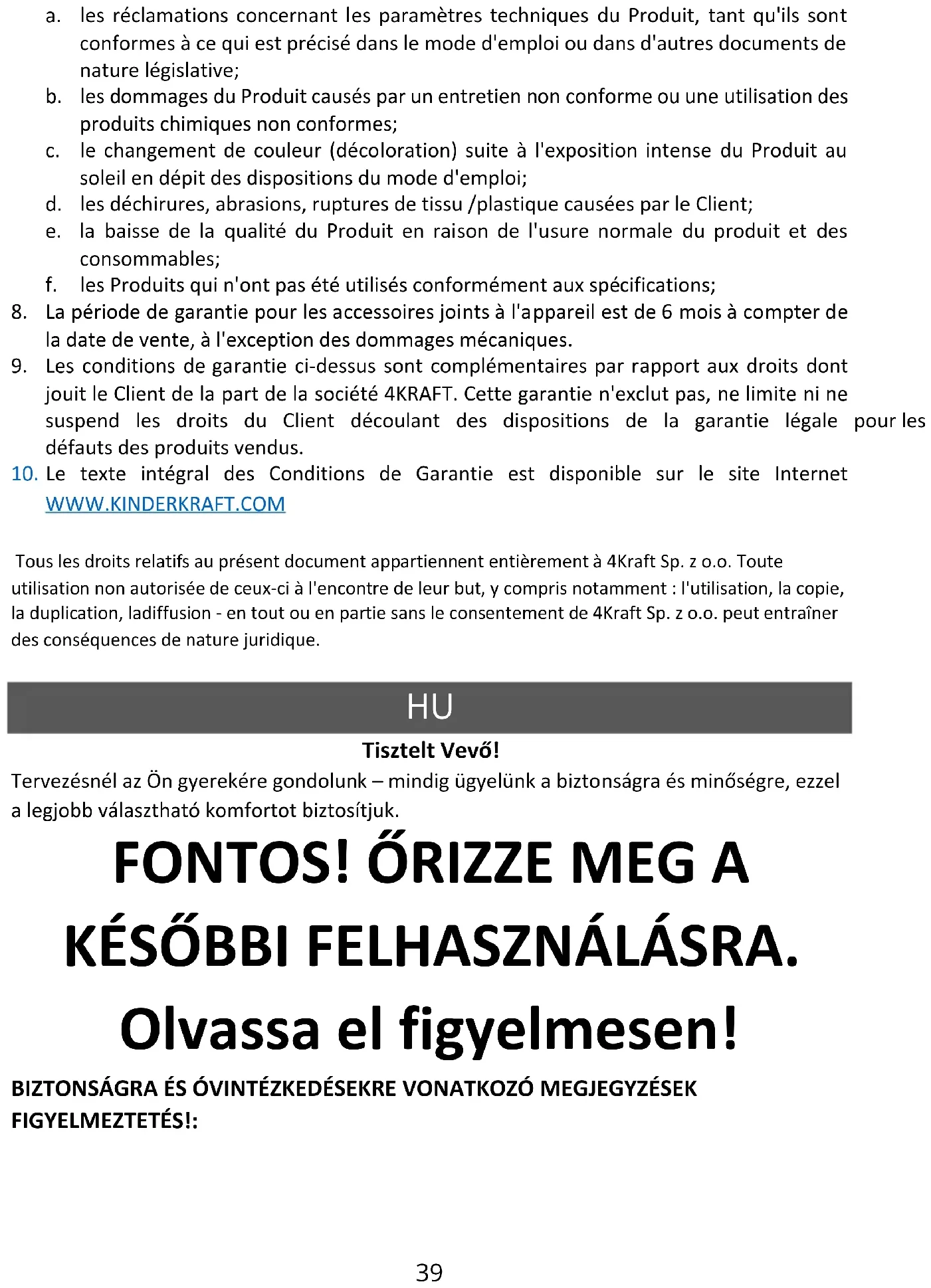 - Kizárólag az ehhez a termékhez mellékelt matracot használja, ne helyezzen bele második matracot, az fulladásveszéllyel jár. Szék funkció használatakor: FIGYELMEZTETÉS!: