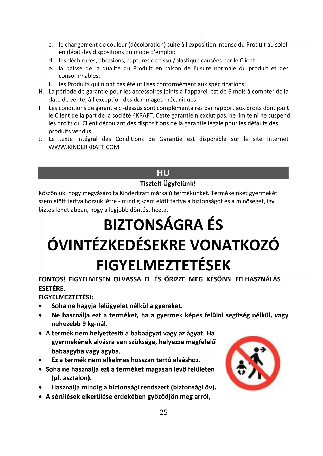 Tisztelt Ügyfelünk! Köszönjük, hogy megvásárolta Kinderkraft márkájú termékünket. Termékeinket gyermekét szem előtt tartva hozzuk létre - mindig szem előtt tartva a biztonságot és a minőséget, így biztos lehet abban, hogy a legjobb döntést hozta.
