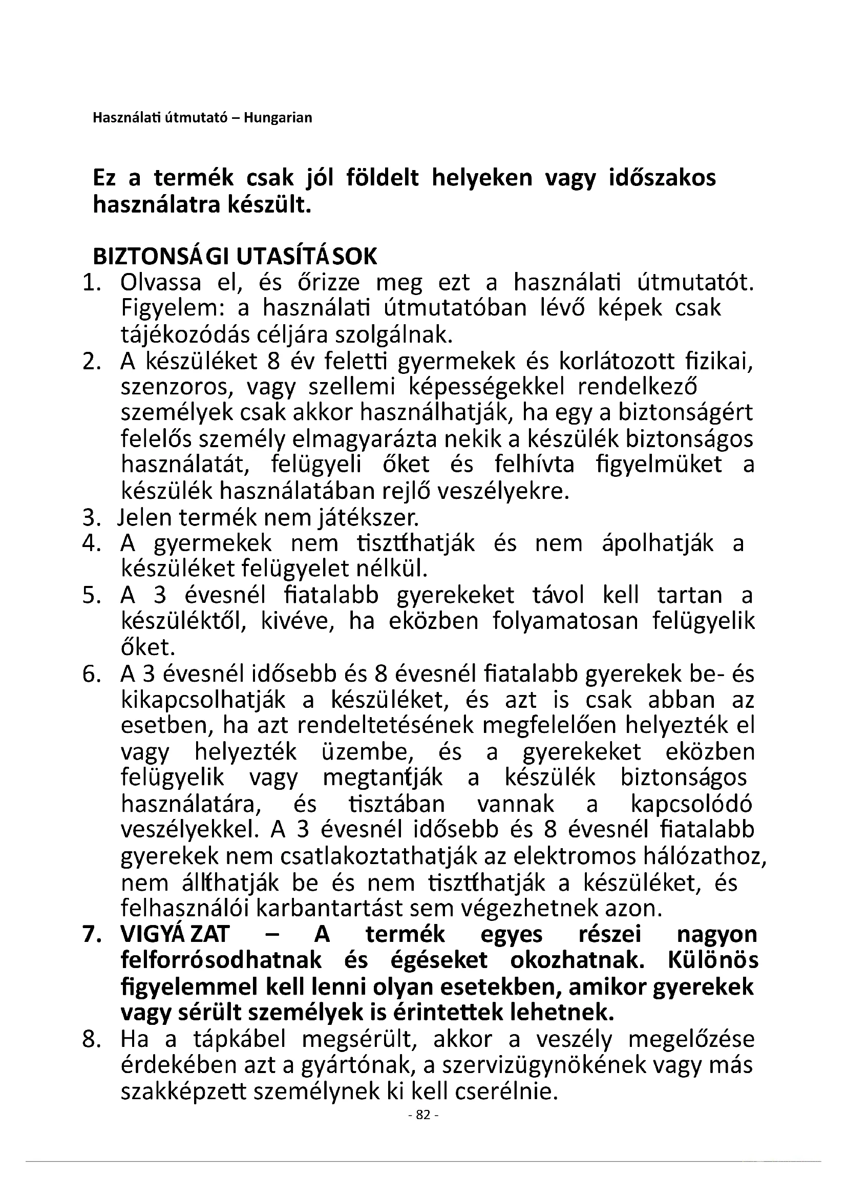 7. VIGYÁZAT – A termék egyes részei nagyon