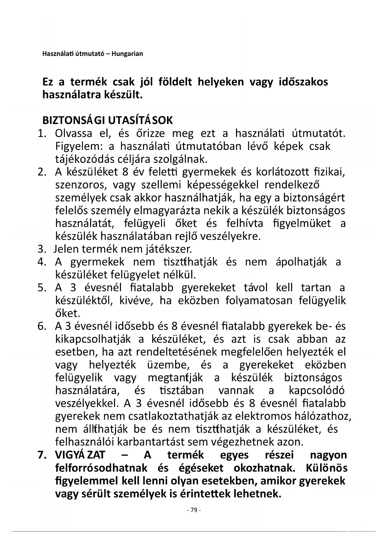7. VIGYÁZAT – A termék egyes részei nagyon