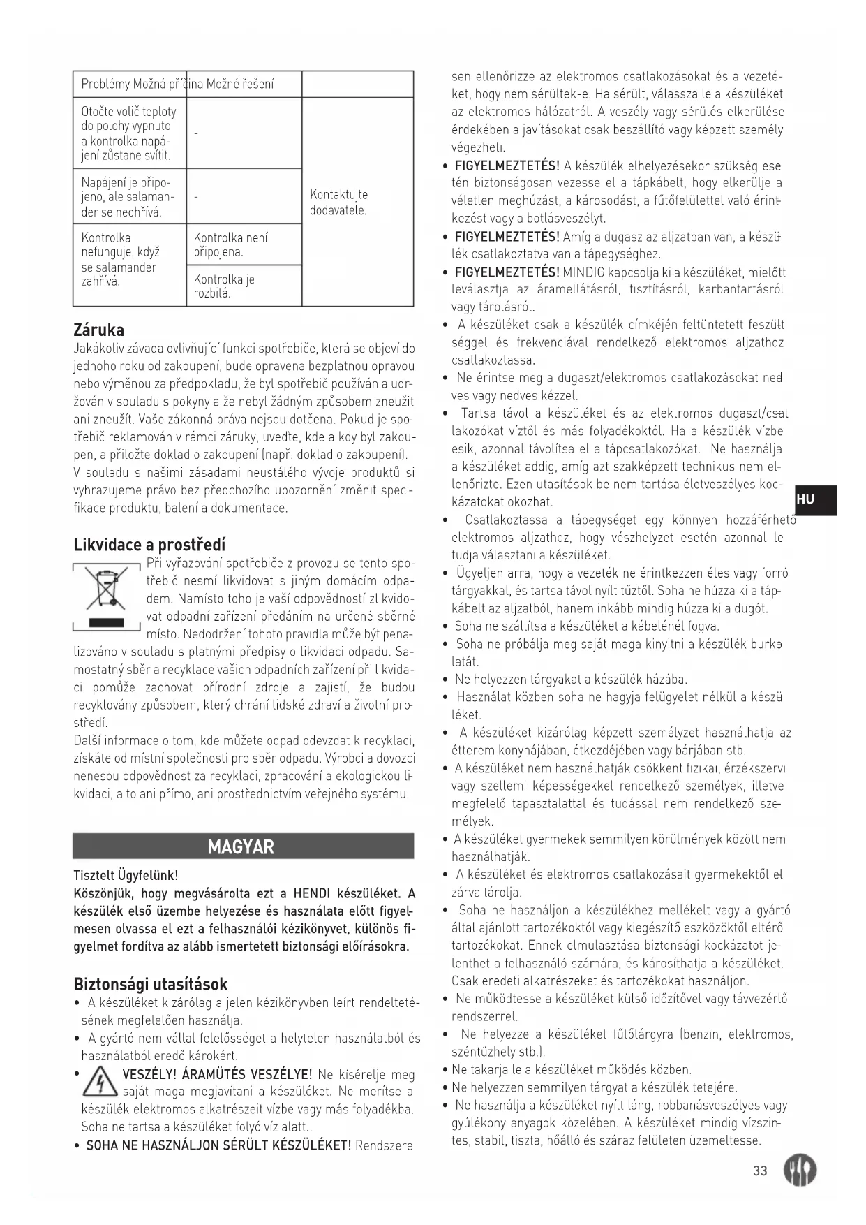 kvidaci, a to ani přímo, ani prostřednictvím veřejného systému. MAGYAR Tisztelt Ügyfelünk! Köszönjük, hogy megvásárolta ezt a HENDI készüléket. A készülék első üzembe helyezése és használata előtt figyel