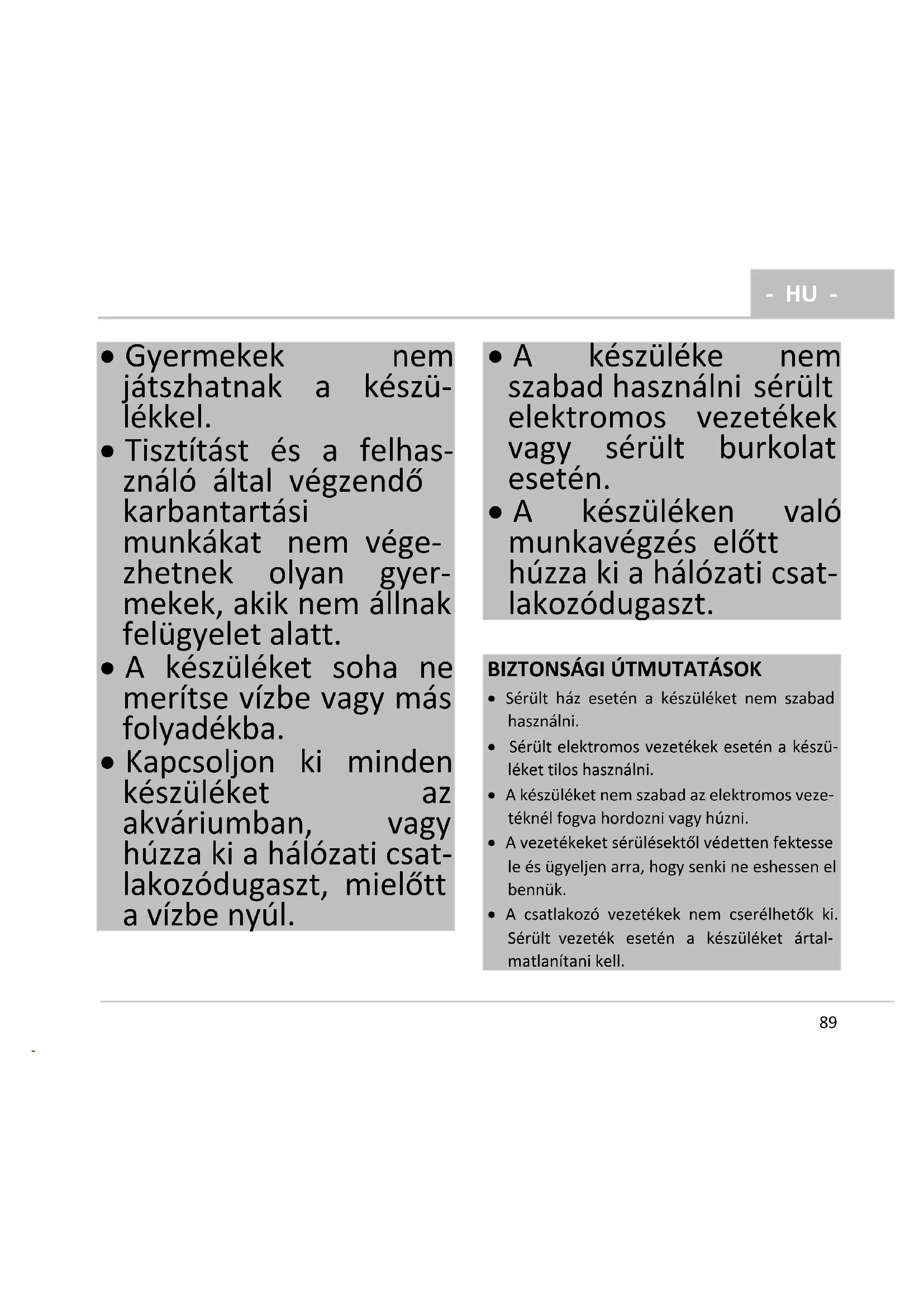- A csatlakozó vezetékek nem cserélhetők ki. Sérült vezeték esetén a készüléket ártal- matlanítani kell.- HU -