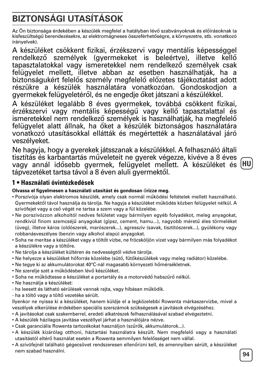 HASZNÁLATI ÚTMUTATÓ RH8871 01 ROWENTA