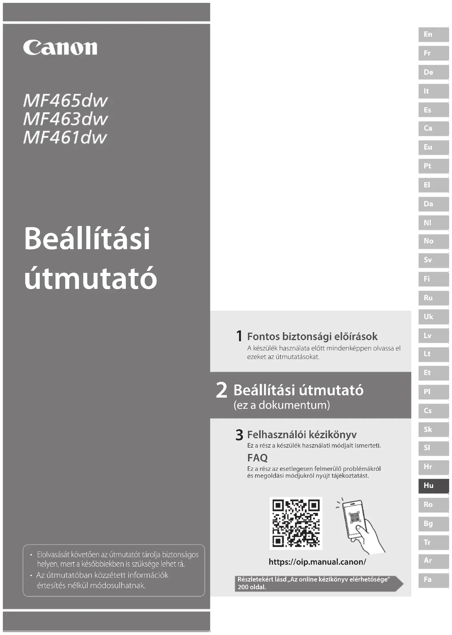 Beállítási útmutató (ez a dokumentum) Beállítási útmutató https://oip.manual.canon/