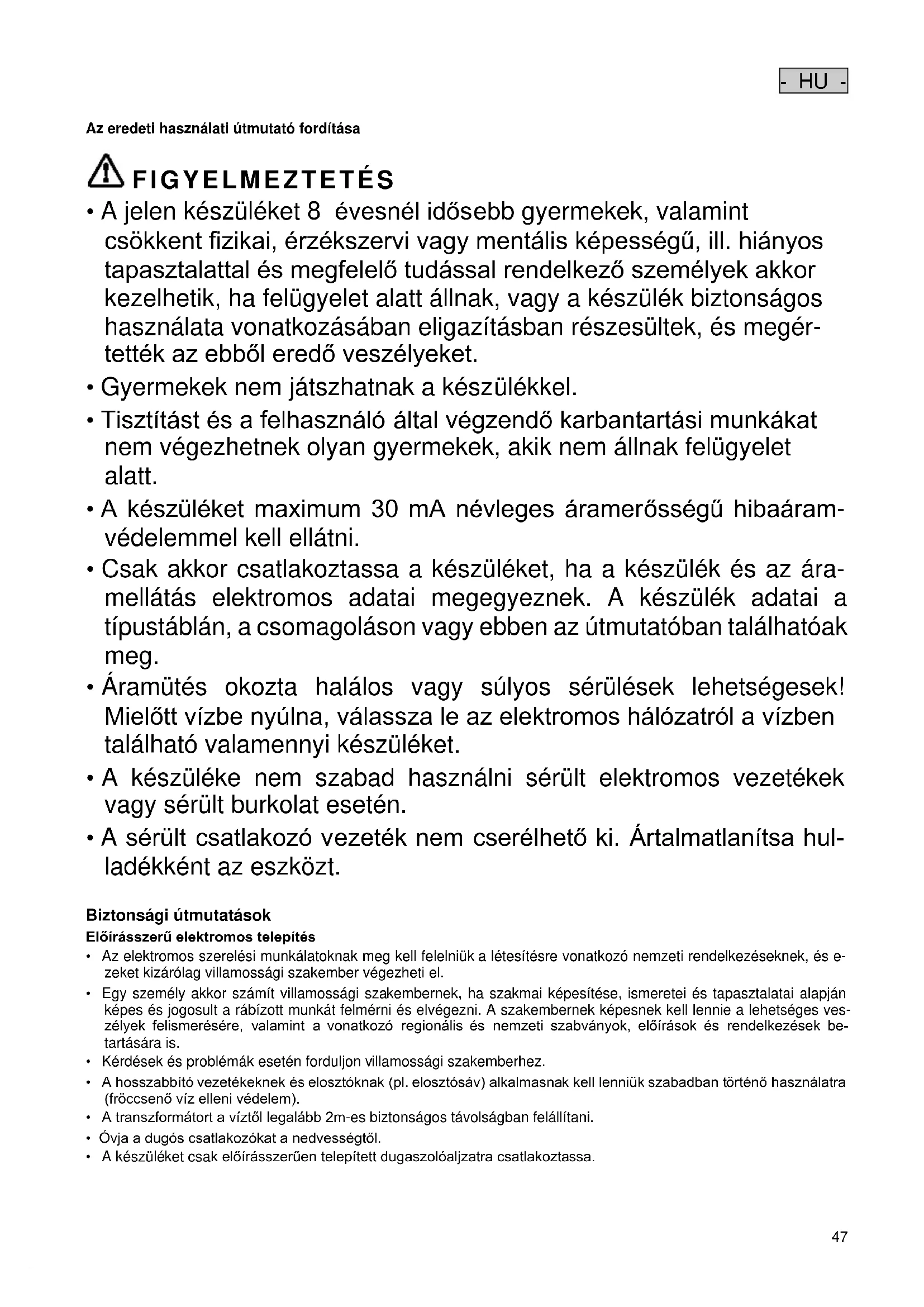 - HU - Az eredeti használati útmutató fordítása FIGYELMEZTETÉS