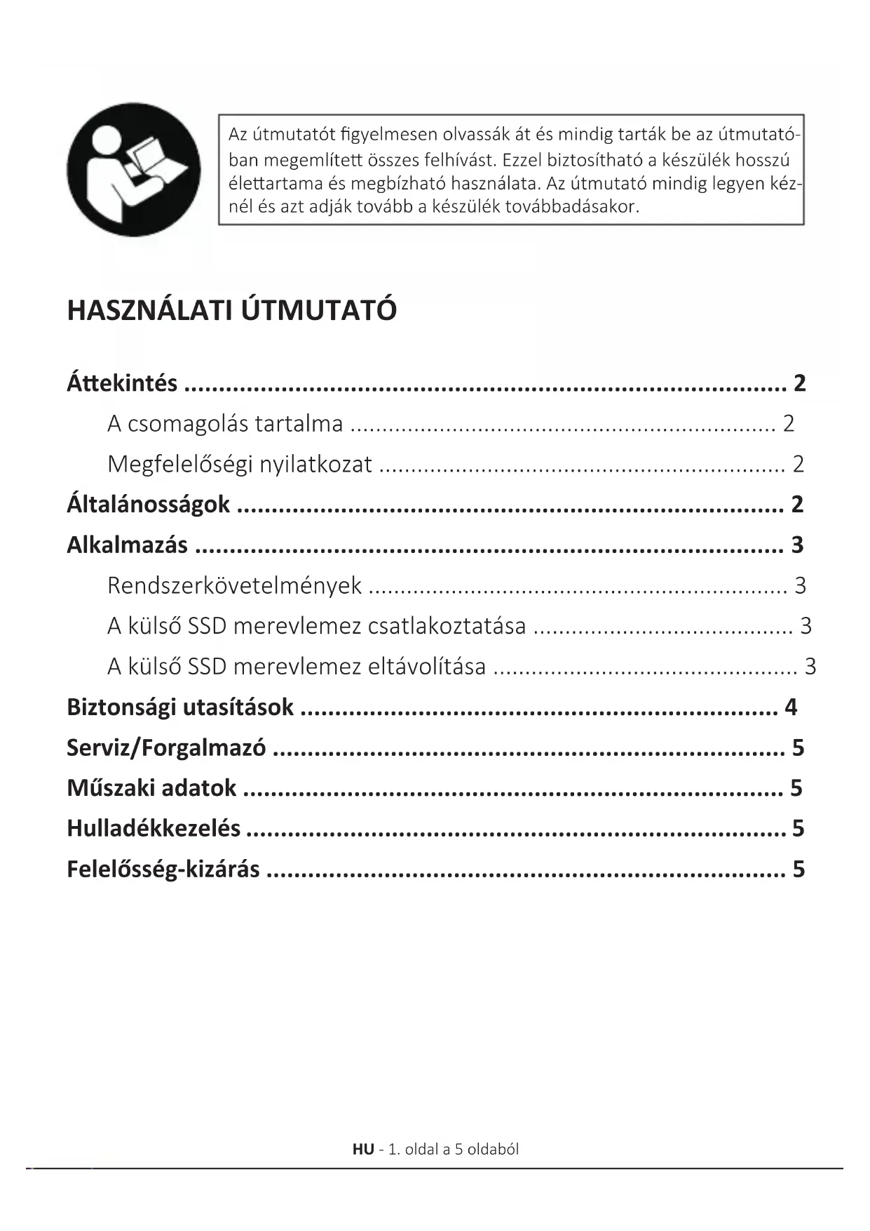 - A külső SSD merevlemez csatlakoztatása p. 3