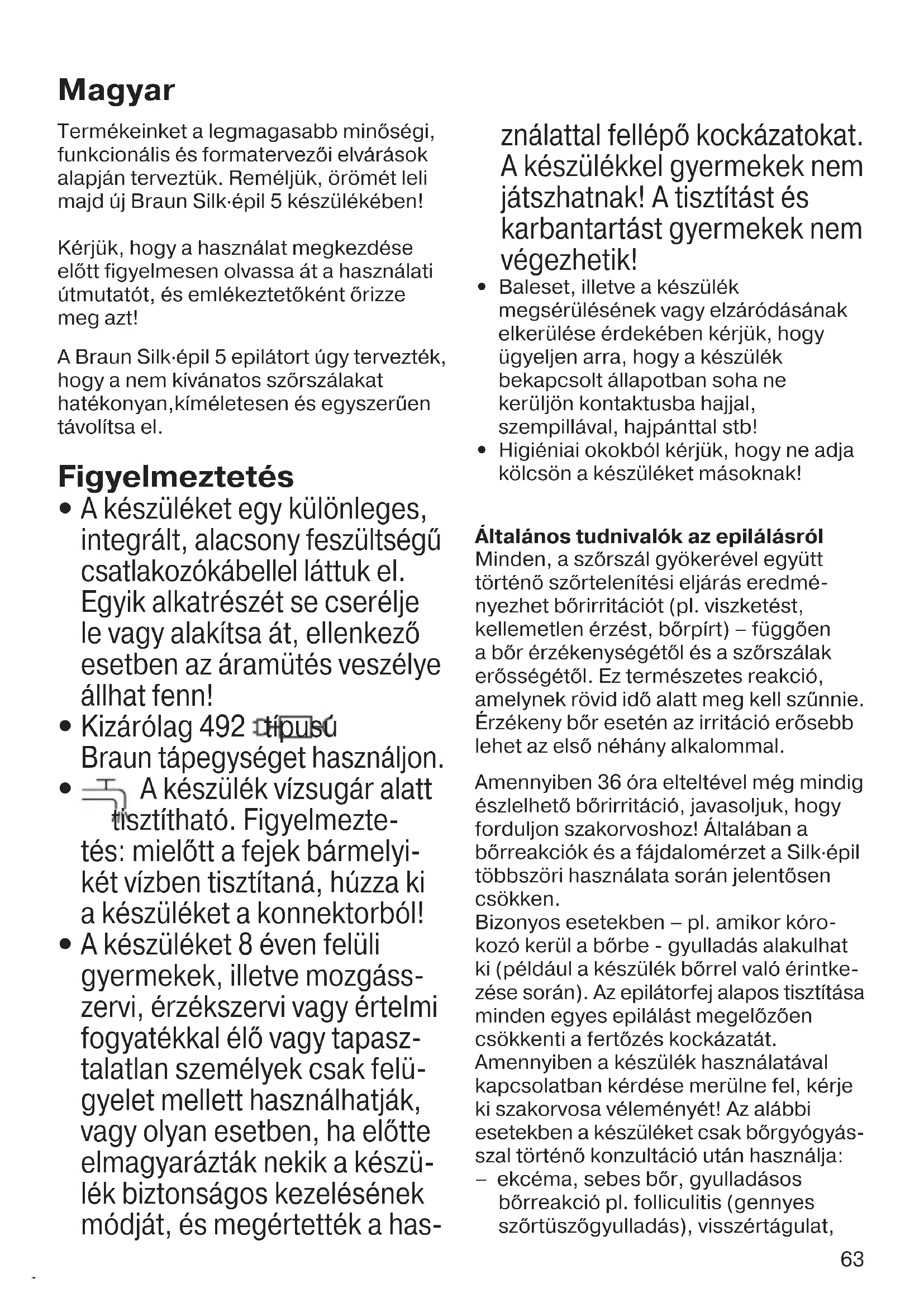 Kizárólag 492 típusú Braun tápegységet használjon.
