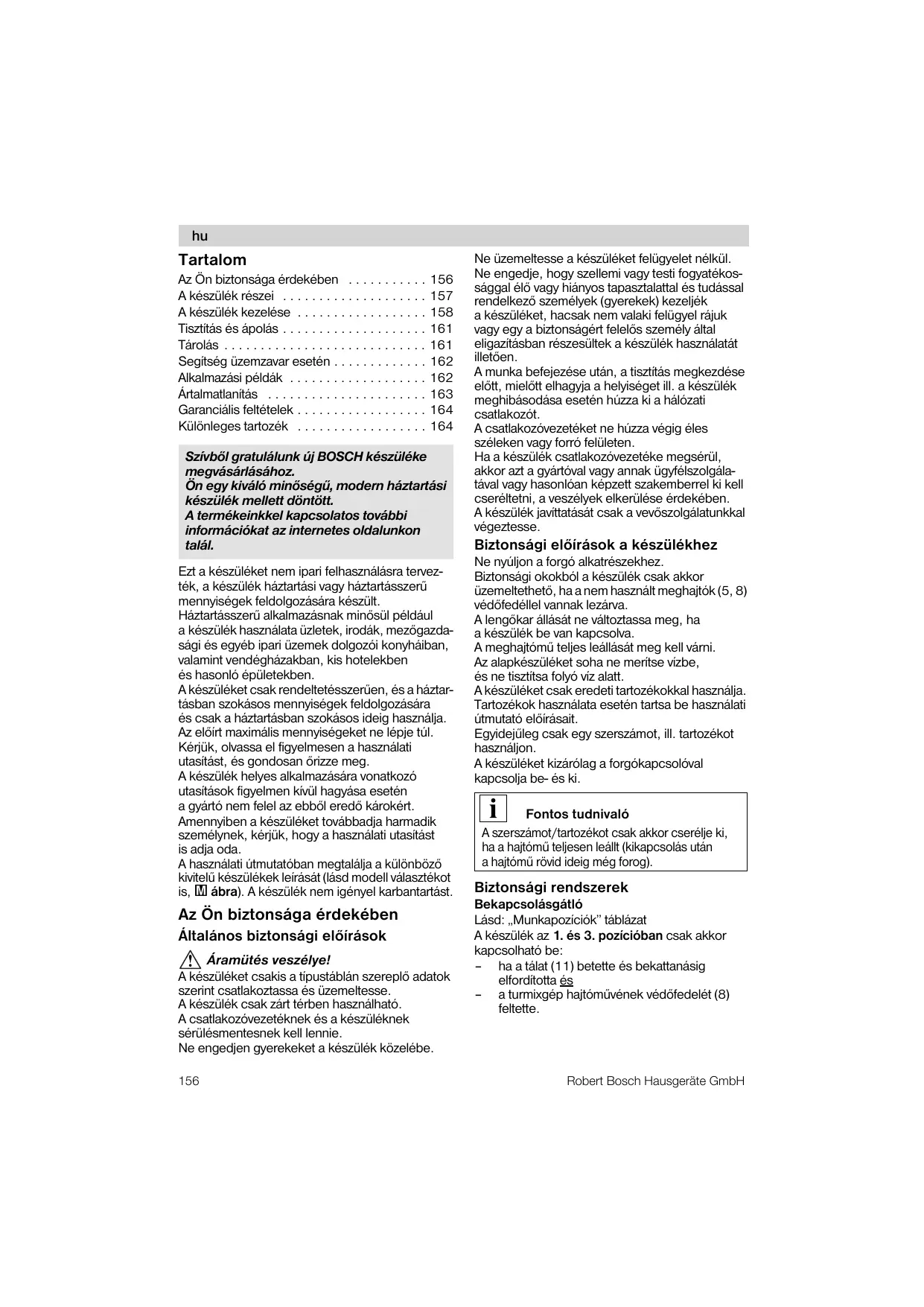 - Tartalom Az Ön biztonsága érdekében p. 156