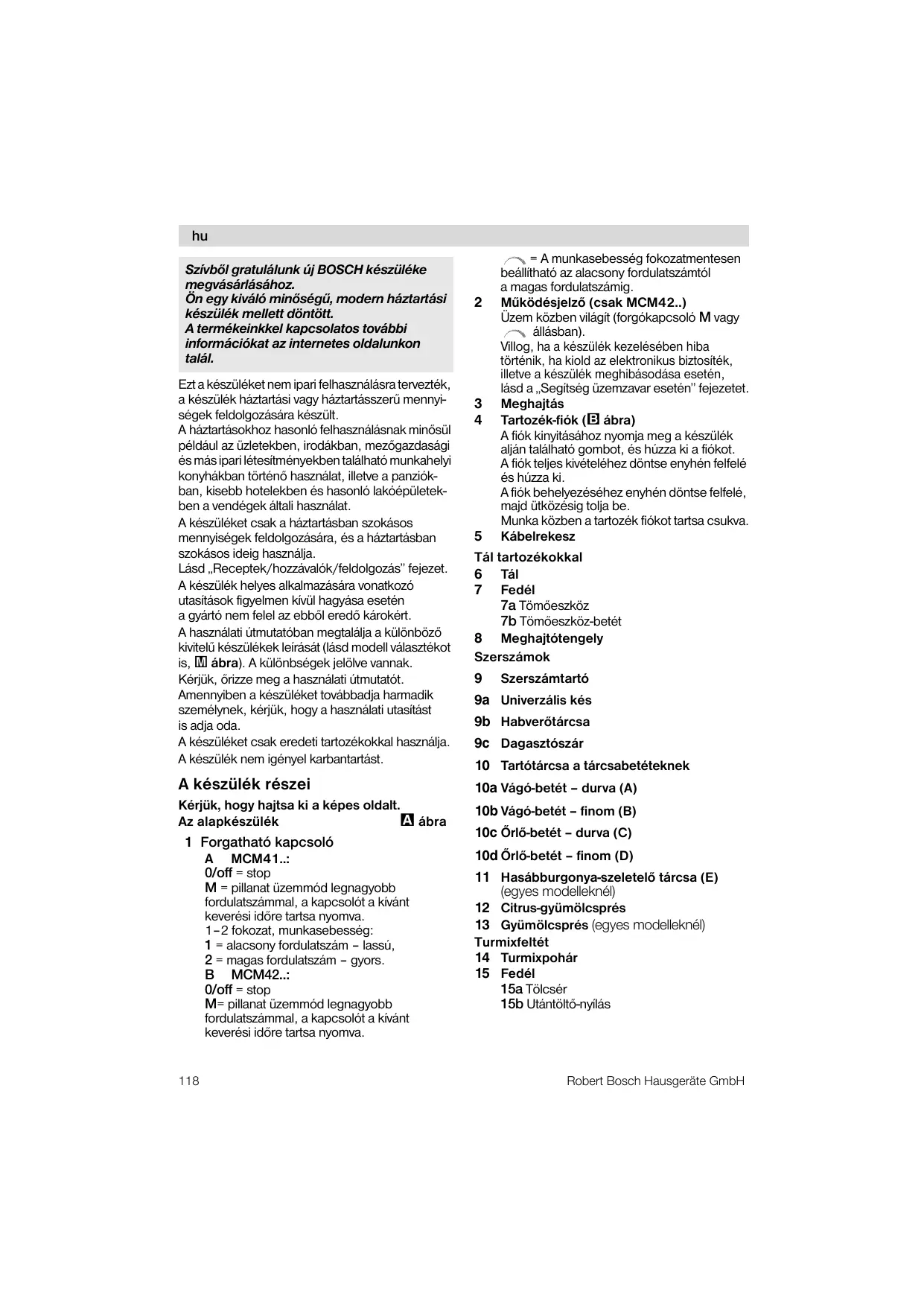 MCM 4200/01 - Konyhai robotgép BOSCH - Ingyenes használati útmutató