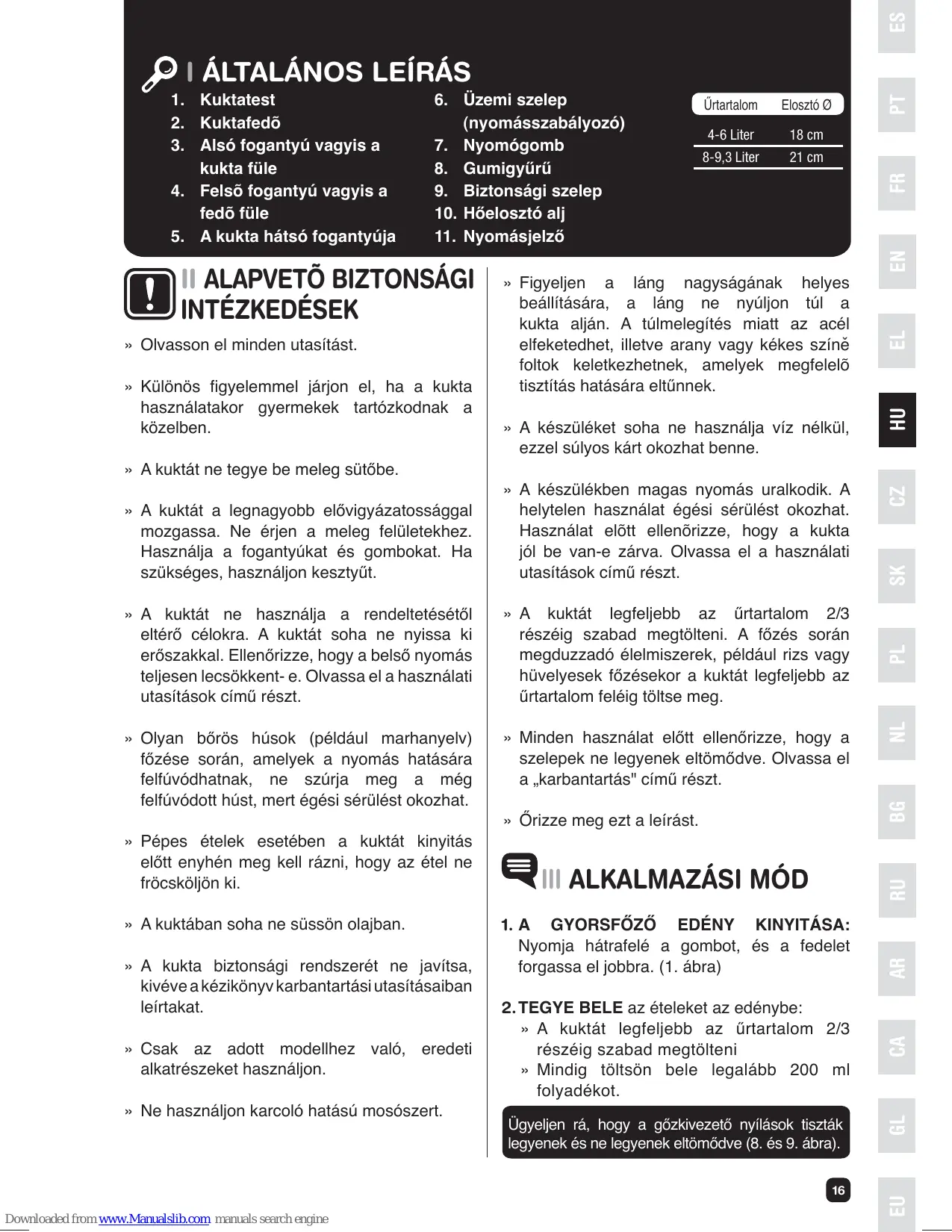 HASZNÁLATI ÚTMUTATÓ ELEGANCE PLUS FAGOR