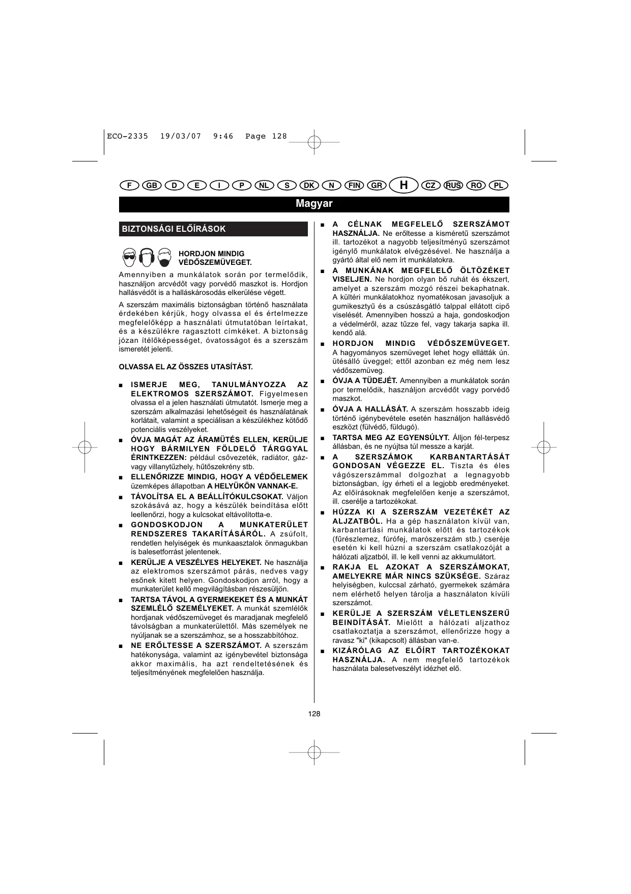 HASZNÁLATI ÚTMUTATÓ ECO-2335 RYOBI