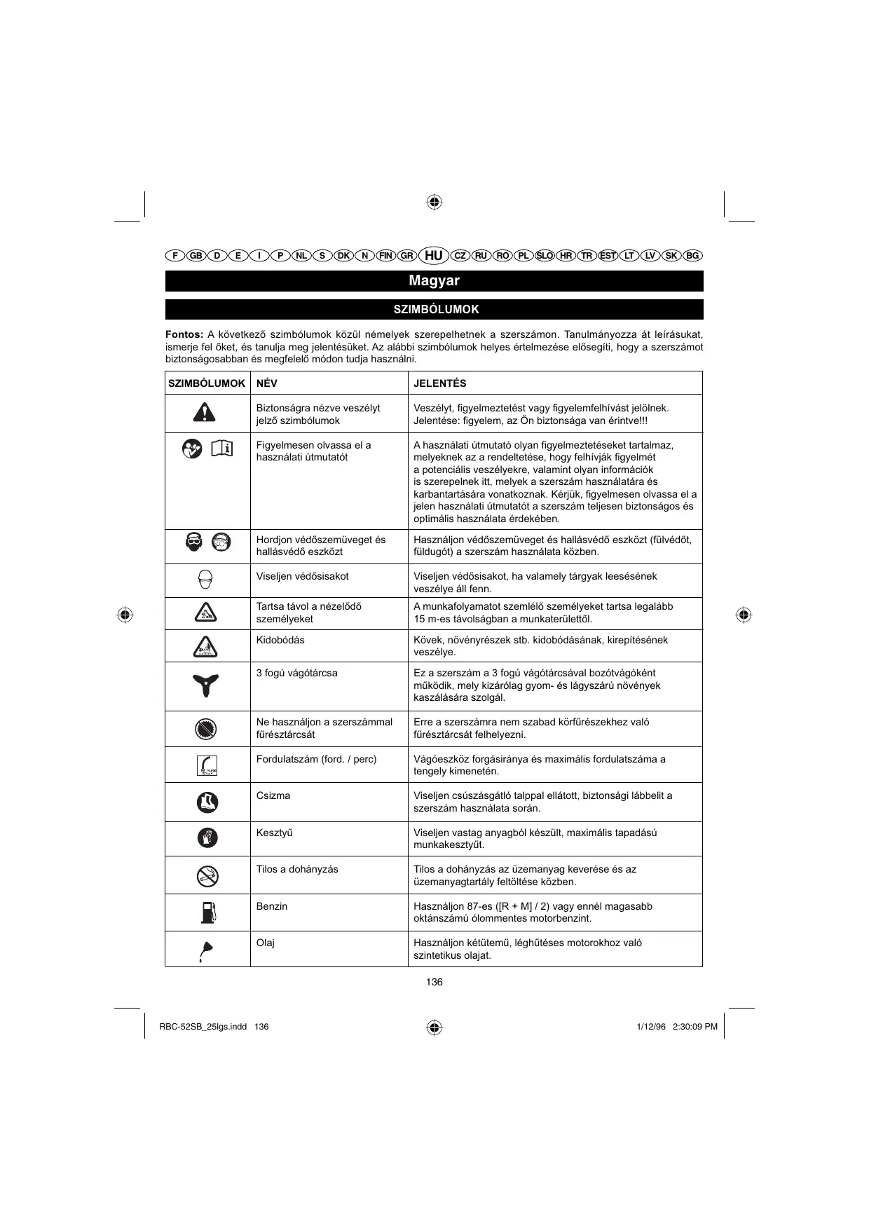 HASZNÁLATI ÚTMUTATÓ RBC52FSB, RBC52SB RYOBI
