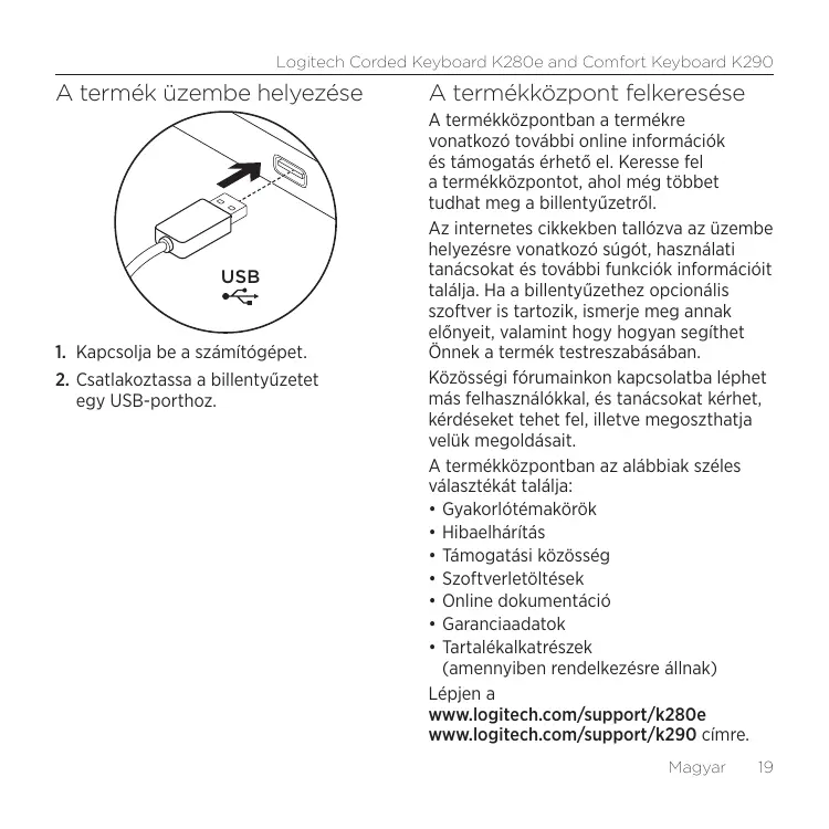 HASZNÁLATI ÚTMUTATÓ K290 LOGITECH