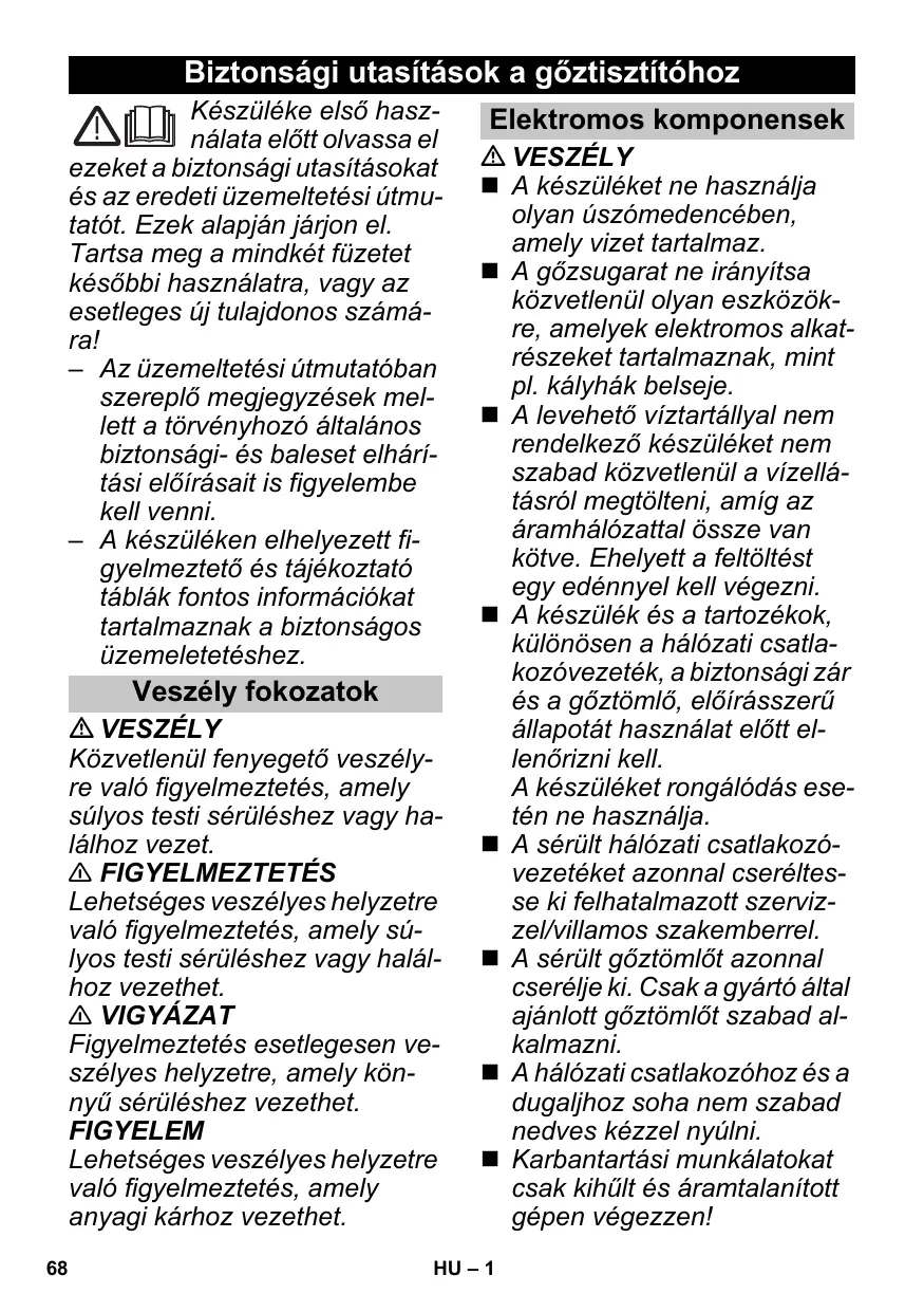 Téléchargez la notice de votre Gőztisztító au format PDF gratuitement ! Retrouvez votre notice SC1 PREMIUM, SC1 EASY FIX PREMIUM - KARCHER et reprennez votre appareil électronique en main. Sur cette page sont publiés tous les documents nécessaires à l'utilisation de votre appareil SC1 PREMIUM, SC1 EASY FIX PREMIUM de la marque KARCHER.
