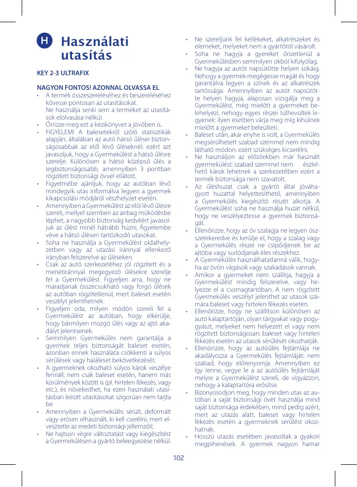 - Az Ultrafix rögzitőket mindig az autó övjeivel együtt kell használni. Sohasem szabad a Gyermekülésr csak az Ultrafix rögzitőkkel rögziteni.