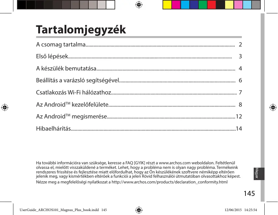 UserGuide_ARCHOS101_Magnus_Plus_book.indd 145 12/06/2015 14:25:54 A csomag tartalma Rövid felhasználói útmutató