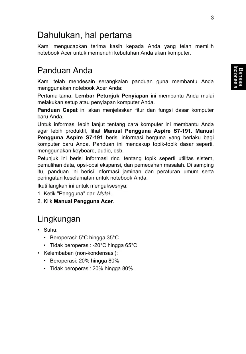 PANDUAN PENGGUNA ASPIRE S7-191 ACER