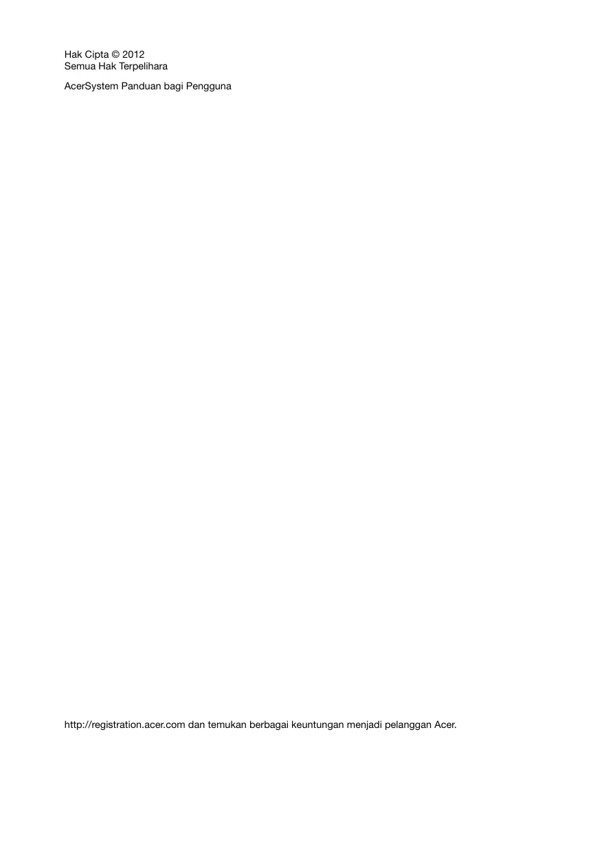 Petunjuk pembuangan Jangan buang perangkat elektronik ini ke tempat sampah. Untuk meminimalkan polusi dan memaksimalkan kelestarian lingkungan global, lakukan daur ulang. Untuk informasi lebih lanjut tentang peraturan WEEE (Limbah Peralatan Listrik dan Elektronik), kunjungi http://www.acer-group.com/public/Sustainability/sustainability01.htm http://www.acer-group.com/public/Sustainability/sustainability04.htm
